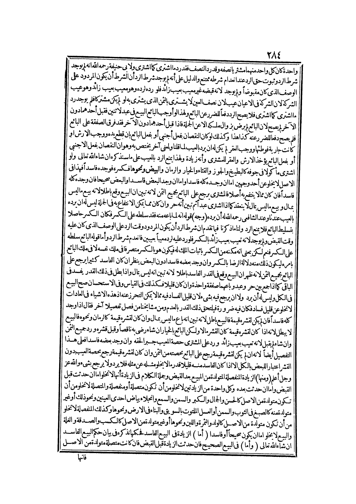 وَثُبُوتُ حَقِّ الرَّدِّ عِنْدَ انْعِدَامِ شَرْطِهِ مُمْتَنِعٌ، وَالدَّلِيلُ عَلَى أَنَّهُ لَمْ يُوجَدْ شَرْطُ الرَّدِّ أَنَّ الشَّرْطَ أَنْ يَكُونَ الْمَرْدُودُ عَلَى الْوَصْفِ الَّذِي كَانَ مَقْبُوضًا، وَلَمْ يُوجَدْ؛ لِأَنَّهُ قَبَضَهُ غَيْرَ مَعِيبٍ بِعَيْبٍ زَائِدٍ، فَلَوْ رَدَّهُ لَرَدَّهُ وَهُوَ مَعِيبٌ بِعَيْبٍ زَائِدٍ وَهُوَ عَيْبُ الشَّرِكَةِ؛ لِأَنَّ الشَّرِكَةَ فِي الْأَعْيَانِ عَيْبٌ؛ لِأَنَّ نِصْفَ الْعَيْنِ لَا يُشْتَرَى بِالثَّمَنِ الَّذِي يُشْتَرَى بِهِ لَوْ لَمْ يَكُنْ مُشْتَرَكًا فَلَمْ يُوجَدْ رَدُّ مَا اشْتَرَى كَمَا اشْتَرَى فَلَا يَصِحُّ الرَّدُّ دَفْعًا لِلضَّرَرِ عَنْ الْبَائِعِ، وَلِهَذَا لَوْ أَوْجَبَ الْبَائِعُ الْبَيْعَ فِي عَبْدٍ لِاثْنَيْنِ فَقَبِلَ أَحَدُهُمَا دُونَ الْآخَرِ لَمْ يَصِحَّ؛ لِأَنَّ الْبَائِعَ لَمْ يَرْضَ بِزَوَالِ مِلْكِهِ إلَّا عَنْ الْجُمْلَةِ فَإِذَا قَبِلَ أَحَدُهُمَا دُونَ الْآخَرِ فَقَدْ فَرَّقَ الصَّفْقَةَ عَلَى الْبَائِعِ فَلَمْ يَصِحَّ دَفْعًا لِلضَّرَرِ عَنْهُ كَذَا هَذَا، وَكَذَلِكَ لَوْ كَانَ النُّقْصَانُ بِفِعْلِ أَجْنَبِيٍّ أَوْ بِفِعْلِ الْبَائِعِ بِأَنْ قَطَعَ يَدَهُ وَوَجَبَ الْأَرْشُ أَوْ كَانَتْ جَارِيَةً فَوَطِئَهَا وَوَجَبَ الْعُقْرُ لَمْ يَكُنْ لَهُ أَنْ يَرُدَّ بِالْعَيْبِ لِمَا قُلْنَا وَلِمَعْنًى آخَرَ يَخْتَصُّ بِهِ وَهُوَ أَنَّ النُّقْصَانَ بِفِعْلِ الْأَجْنَبِيِّ أَوْ بِفِعْلِ الْبَائِعِ يُؤْخَذُ الْأَرْشُ وَالْعُقْرُ لِلْمُشْتَرِي وَأَنَّهُ زِيَادَةٌ وَلِهَذَا يُمْنَعُ الرَّدُّ بِالْعَيْبِ عَلَى مَا سَنَذْكُرُهُ إنْ شَاءَ اللَّهُ تَعَالَى.