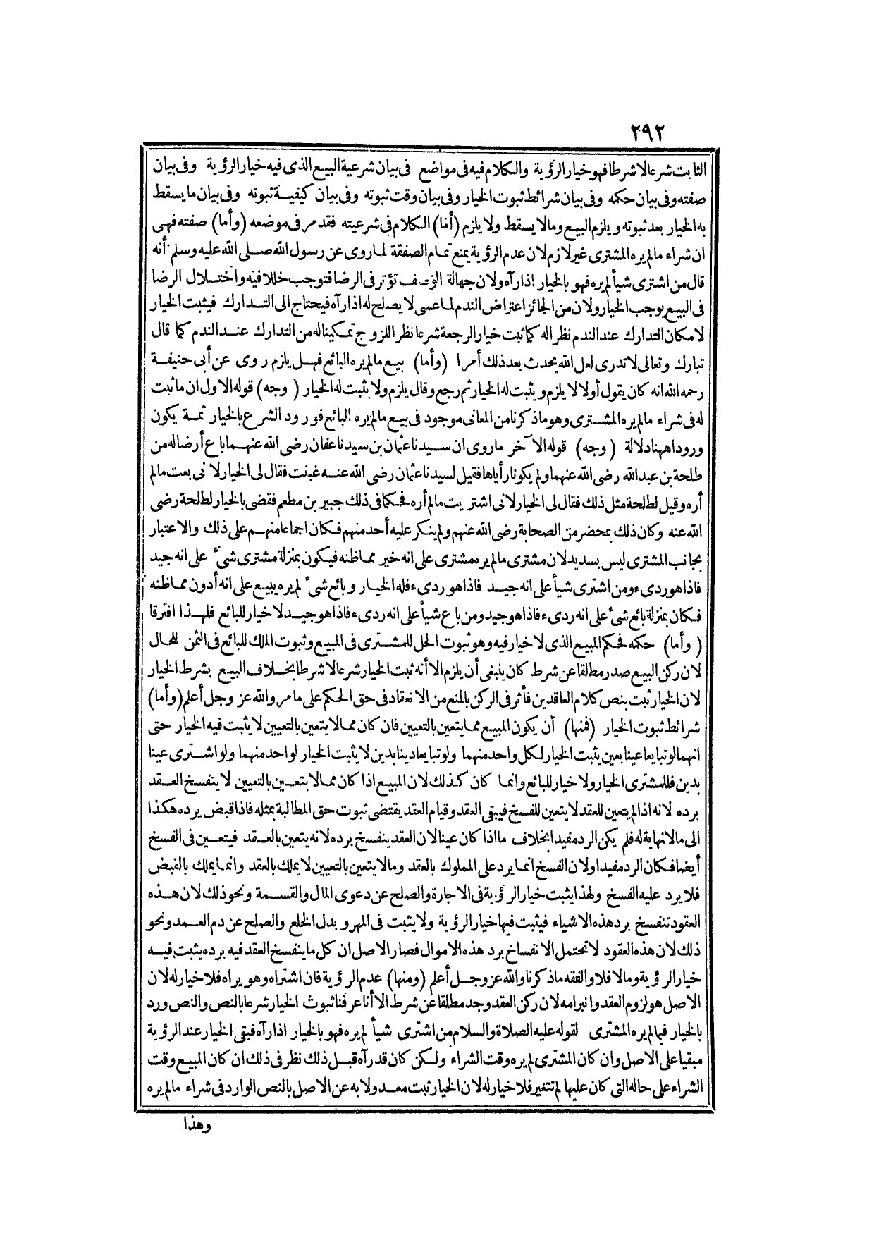 فَهُوَ خِيَارُ الرُّؤْيَةِ، وَالْكَلَامُ فِيهِ فِي مَوَاضِعَ: فِي بَيَانِ شَرْعِيَّةِ الْبَيْعِ الَّذِي فِيهِ خِيَارُ الرُّؤْيَةِ، وَفِي بَيَانِ صِفَتِهِ، وَفِي بَيَانِ حُكْمِهِ، وَفِي بَيَانِ شَرَائِطِ ثُبُوتِ الْخِيَارِ، وَفِي بَيَانِ وَقْتِ ثُبُوتِهِ، وَفِي بَيَانِ كَيْفِيَّةِ ثُبُوتِهِ، وَفِي بَيَانِ مَا يَسْقُطُ بِهِ الْخِيَارُ بَعْدَ ثُبُوتِهِ وَيَلْزَمُ الْبَيْعُ وَمَا لَا يَسْقُطُ وَلَا يَلْزَمُ.