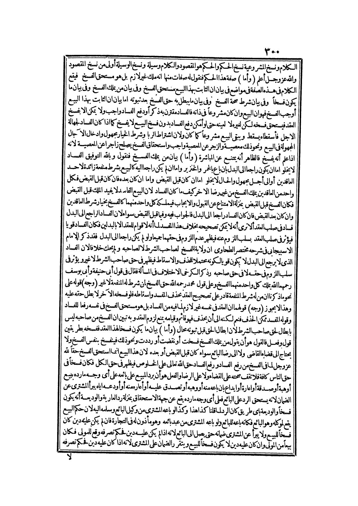 (وَأَمَّا) صِفَةُ هَذَا الْحُكْمِ فَنَقُولُ لَهُ صِفَاتٌ مِنْهَا أَنَّهُ مِلْكٌ غَيْرُ لَازِمٍ بَلْ هُوَ مُسْتَحِقُّ الْفَسْخِ فَيَقَعُ الْكَلَامُ فِي هَذِهِ الصِّفَةِ فِي مَوَاضِعَ، فِي بَيَانِ أَنَّ الثَّابِتَ بِهَذَا الْبَيْعِ مُسْتَحِقُّ الْفَسْخِ، وَفِي بَيَانِ مَنْ يَمْلِكُ الْفَسْخَ، وَفِي بَيَانِ مَا يَكُونُ فَسْخًا، وَفِي بَيَانِ شَرْطِ صِحَّةِ الْفَسْخِ، وَفِي بَيَانِ مَا يَبْطُلُ بِهِ حَقُّ الْفَسْخِ بَعْدَ ثُبُوتِهِ أَمَّا بَيَانُ أَنَّ الثَّابِتَ بِهَذَا الْبَيْعِ أَوْجَبَ الْفَسْخَ فَهُوَ أَنَّ الْبَيْعَ وَإِنْ كَانَ مَشْرُوعًا فِي ذَاتِهِ فَالْفَسَادُ مُقْتَرِنٌ بِهِ ذِكْرًا وَدَفْعُ الْفَسَادِ وَاجِبٌ وَلَا يُمْكِنُ إلَّا بِفَسْخِ الْعَقْدِ فَيُسْتَحَقُّ فَسْخُهُ لَكِنْ لِغَيْرِهِ لَا لِعَيْنِهِ حَتَّى لَوْ أَمْكَنَ دَفْعُ الْفَسَادِ بِدُونِ فَسْخِ الْبَيْعِ لَا يُفْسَخُ كَمَا إذَا كَانَ الْفَسَادُ لِجَهَالَةِ الْأَجَلِ فَأَسْقَطَاهُ يَسْقُطُ وَيَبْقَى الْبَيْعُ مَشْرُوعًا كَمَا كَانَ؛ وَلِأَنَّ اشْتِرَاطَ الرِّبَا وَشَرْطَ الْخِيَارِ مَجْهُولٌ وَإِدْخَالُ الْآجَالِ الْمَجْهُولَةِ فِي الْبَيْعِ وَنَحْوُ ذَلِكَ مَعْصِيَةٌ، وَالزَّجْرُ عَنْ الْمَعْصِيَةِ وَاجِبٌ وَاسْتِحْقَاقُ الْفَسْخِ يَصْلُحُ زَاجِرًا عَنْ الْمَعْصِيَةِ؛ لِأَنَّهُ إذَا عَلِمَ أَنَّهُ يَفْسَخُ فَالظَّاهِرُ أَنَّهُ يَمْتَنِعُ عَنْ الْمُبَاشَرَةِ.