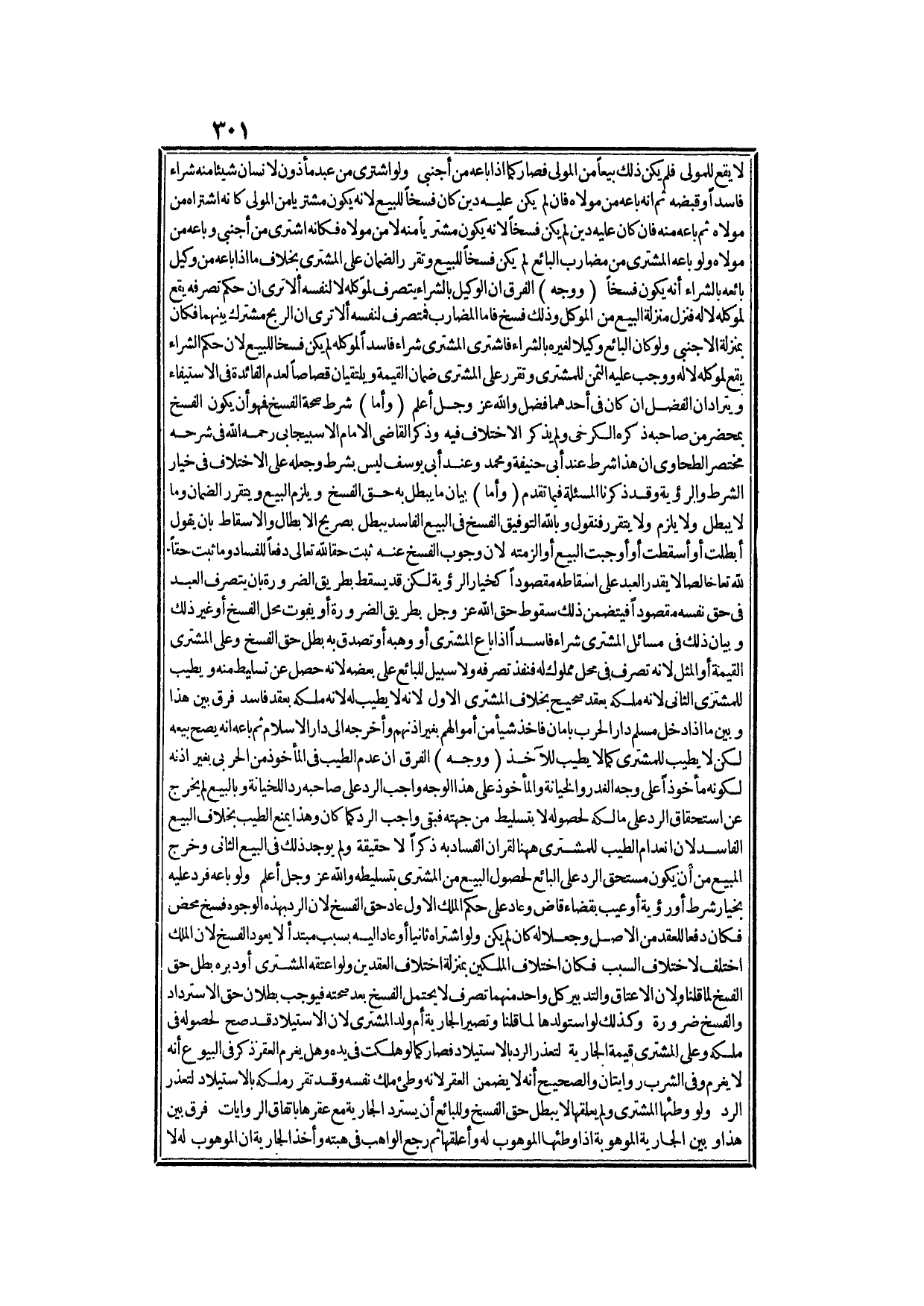 وَلَوْ اشْتَرَى مِنْ عَبْدٍ مَأْذُونٍ لِإِنْسَانٍ شَيْئًا مِنْهُ شِرَاءً فَاسِدًا وَقَبَضَهُ، ثُمَّ إنَّهُ بَاعَهُ مِنْ مَوْلَاهُ فَإِنْ لَمْ يَكُنْ عَلَيْهِ دَيْنٌ كَانَ فَسْخًا لِلْبَيْعِ؛ لِأَنَّهُ يَكُونُ مُشْتَرِيًا مِنْ الْمَوْلَى كَأَنَّهُ اشْتَرَاهُ مِنْ مَوْلَاهُ ثُمَّ بَاعَهُ مِنْهُ فَإِنْ كَانَ عَلَيْهِ دَيْنٌ لَمْ يَكُنْ فَسْخًا؛ لِأَنَّهُ يَكُونُ مُشْتَرِيًا مِنْهُ مِنْ مَوْلَاهُ فَكَأَنَّهُ اشْتَرَى مِنْ أَجْنَبِيٍّ وَبَاعَهُ مِنْ مَوْلَاهُ، وَلَوْ بَاعَهُ الْمُشْتَرِي مِنْ مُضَارِبِ الْبَائِعِ لَمْ يَكُنْ فَسْخًا لِلْبَيْعِ، وَتَقَرَّرَ الضَّمَانُ عَلَى الْمُشْتَرِي بِخِلَافِ مَا إذَا بَاعَهُ مِنْ وَكِيلِ بَائِعِهِ بِالشِّرَاءِ أَنَّهُ يَكُونُ فَسْخًا.