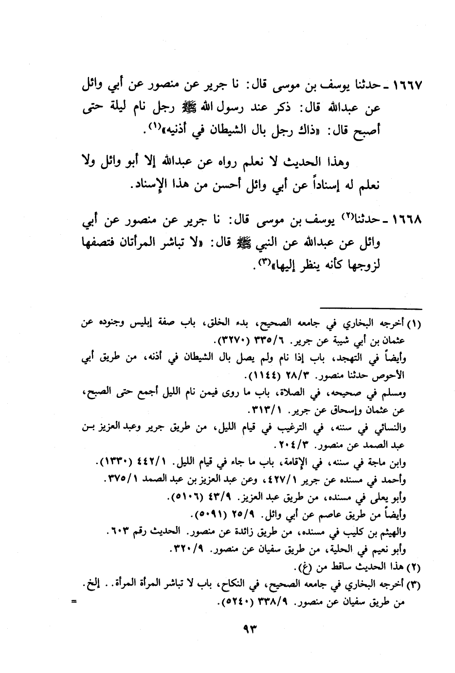 1669 - حَدَّثَنَا يُوسُفُ بْنُ مُوسَى، قَالَ: نا جَرِيرٌ، عَنْ مَنْصُورٍ، عَنْ أَبِي وَائِلٍ