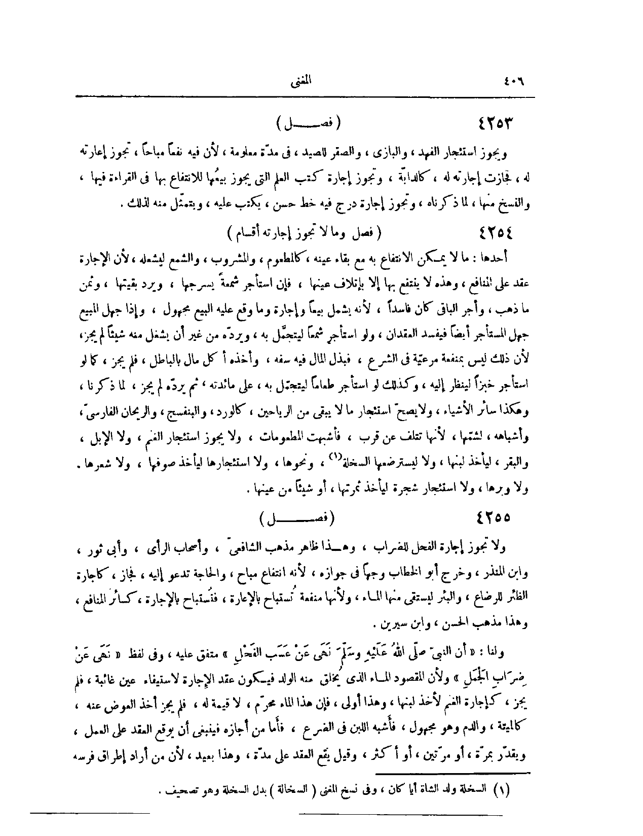 (٤٣١٣) فَصْلٌ: وَيَجُوزُ اسْتِئْجَارُ الْفَهْدِ وَالْبَازِي وَالصَّقْرِ لِلصَّيْدِ، فِي مُدَّةٍ مَعْلُومَةٍ؛ لِأَنَّ فِيهِ نَفْعًا مُبَاحًا تَجُوزُ إعَارَتُهُ لَهُ، فَجَازَتْ إجَارَتُهُ لَهُ، كَالدَّابَّةِ. وَتَجُوزُ إجَارَةُ كُتُبِ الْعِلْمِ، الَّتِي يَجُوزُ بَيْعُهَا لِلِانْتِفَاعِ بِهَا فِي الْقِرَاءَةِ فِيهَا، وَالنَّسْخِ مِنْهَا؛ لِمَا ذَكَرْنَاهُ. وَتَجُوزُ إجَارَةُ دَرَجٍ فِيهِ خَطٌّ حَسَنٌ، يُكْتَبُ عَلَيْهِ، وَيُتَمَثَّلُ مِنْهُ لِذَلِكَ.