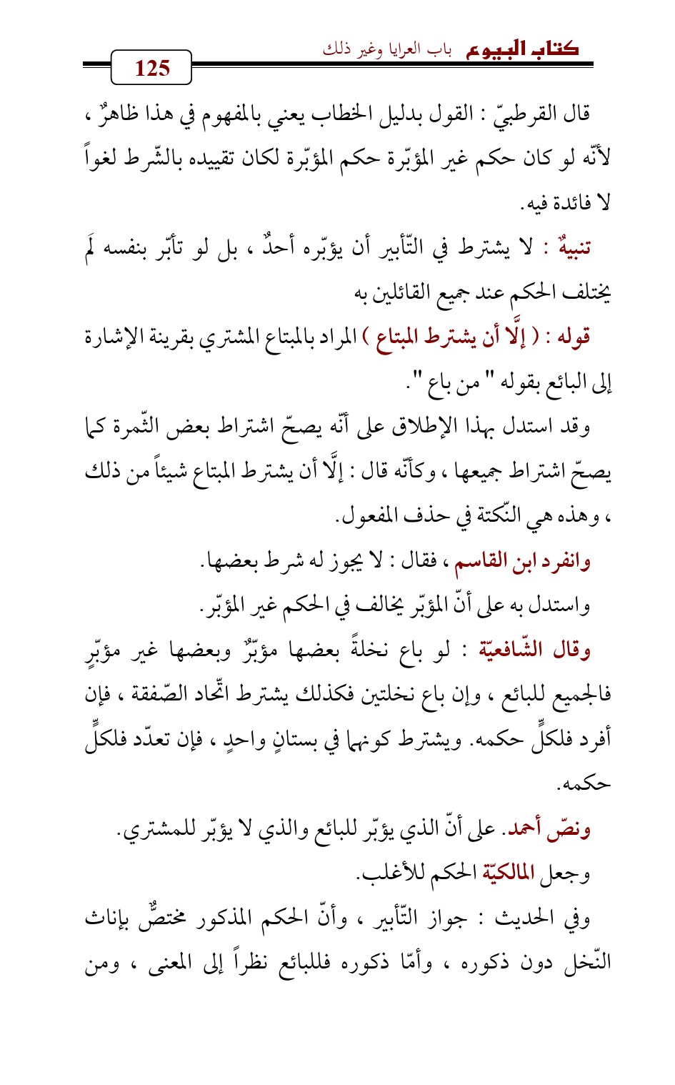 قال القرطبيّ: القول بدليل الخطاب يعني بالمفهوم في هذا ظاهرٌ , لأنّه لو كان حكم غير المؤبّرة حكم المؤبّرة لكان تقييده بالشّرط لغواً لا فائدة فيه.