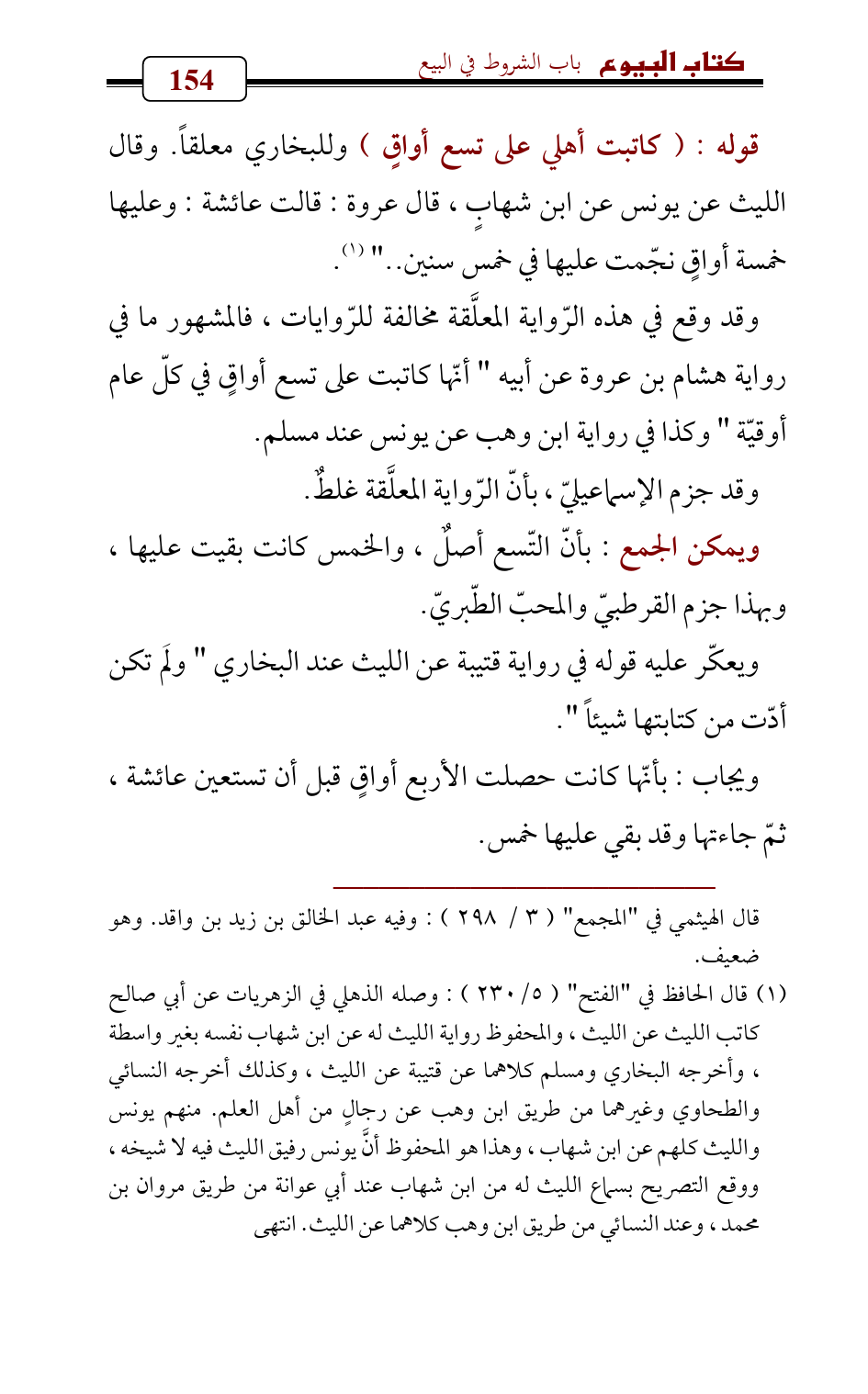 وقد وقع في هذه الرّواية المعلَّقة مخالفة للرّوايات , فالمشهور ما في رواية هشام بن عروة عن أبيه " أنّها كاتبت على تسع أواقٍ في كلّ عام أوقيّة " وكذا في رواية ابن وهب عن يونس عند مسلم.