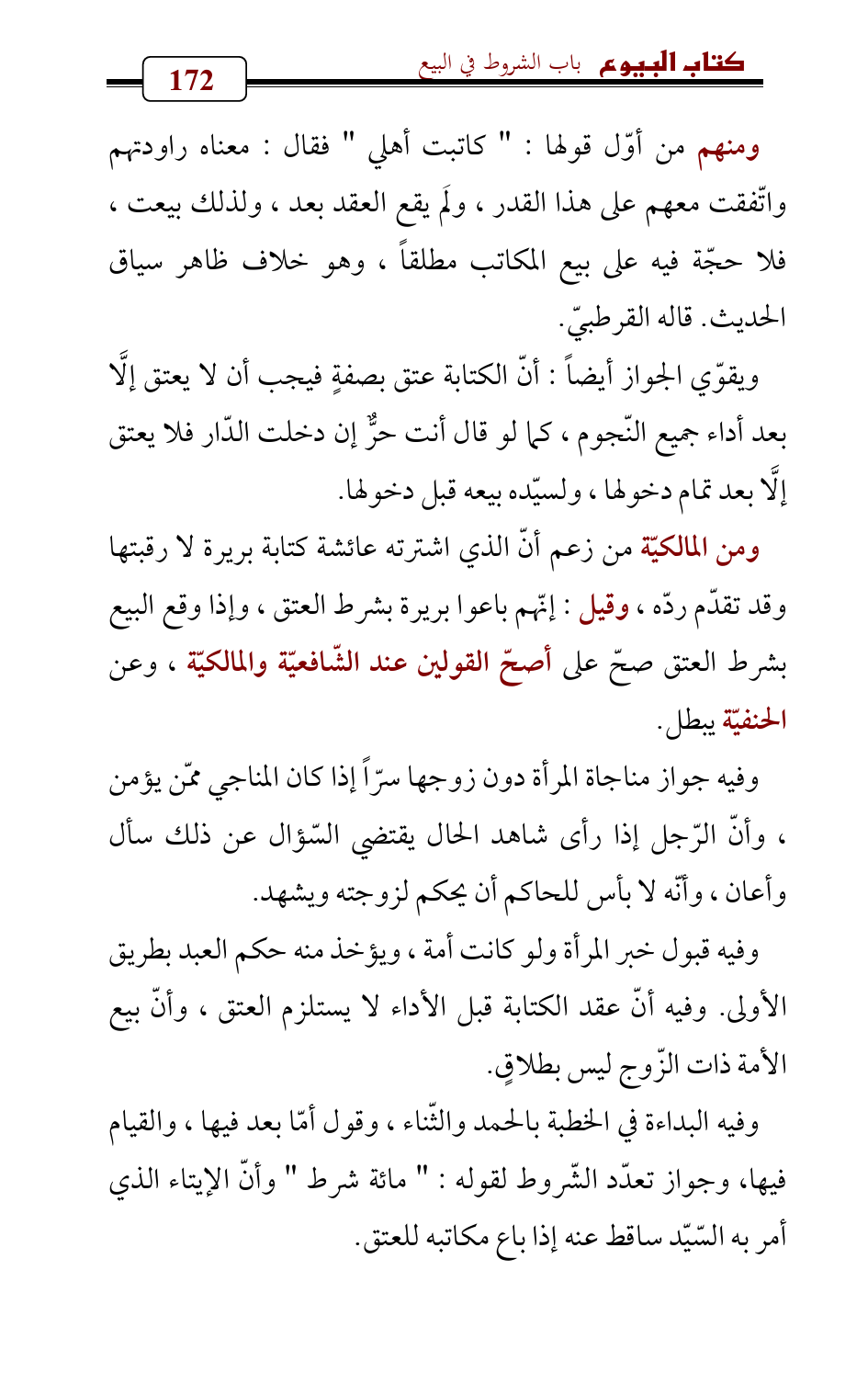 ومن المالكيّة من زعم أنّ الذي اشترته عائشة كتابة بريرة لا رقبتها وقد تقدّم ردّه، وقيل: إنّهم باعوا بريرة بشرط العتق، وإذا وقع البيع بشرط العتق صحّ على أصحّ القولين عند الشّافعيّة والمالكيّة، وعن الحنفيّة يبطل.