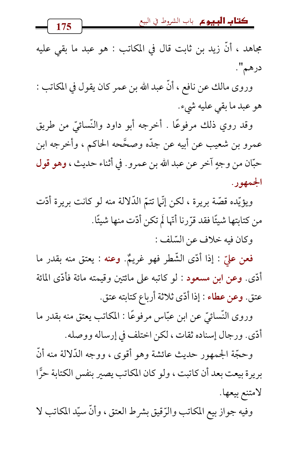 وحجّة الجمهور حديث عائشة وهو أقوى، ووجه الدّلالة منه أنّ بريرة بيعت بعد أن كاتبت، ولو كان المكاتب يصير بنفس الكتابة حرًّا لامتنع بيعها.