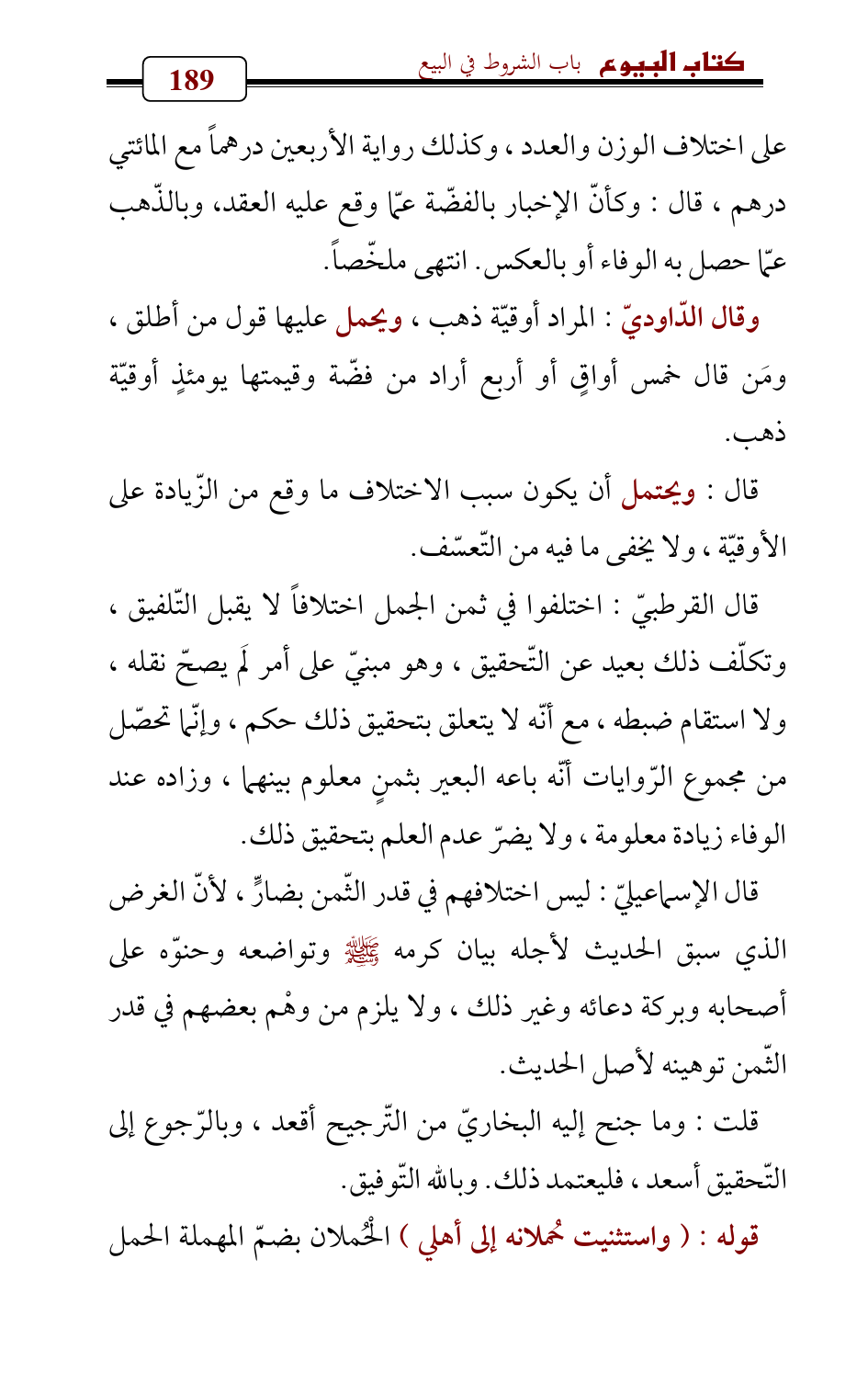 قال الإسماعيليّ: ليس اختلافهم في قدر الثّمن بضارٍّ، لأنّ الغرض الذي سبق الحديث لأجله بيان كرمه - صلى الله عليه وسلم - وتواضعه وحنوّه على أصحابه وبركة دعائه وغير ذلك، ولا يلزم من وهْم بعضهم في قدر الثّمن توهينه لأصل الحديث.