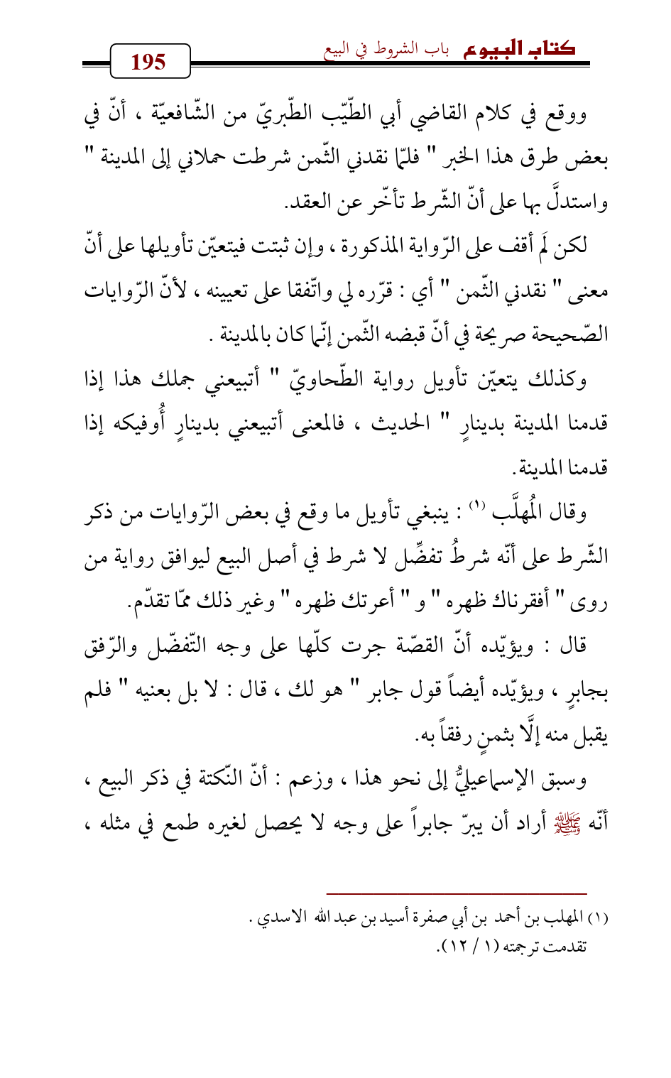 وقال المُهلَّب (¬1): ينبغي تأويل ما وقع في بعض الرّوايات من ذكر الشّرط على أنّه شرطُ تفضِّل لا شرط في أصل البيع ليوافق رواية من روى " أفقرناك ظهره " و " أعرتك ظهره " وغير ذلك ممّا تقدّم.