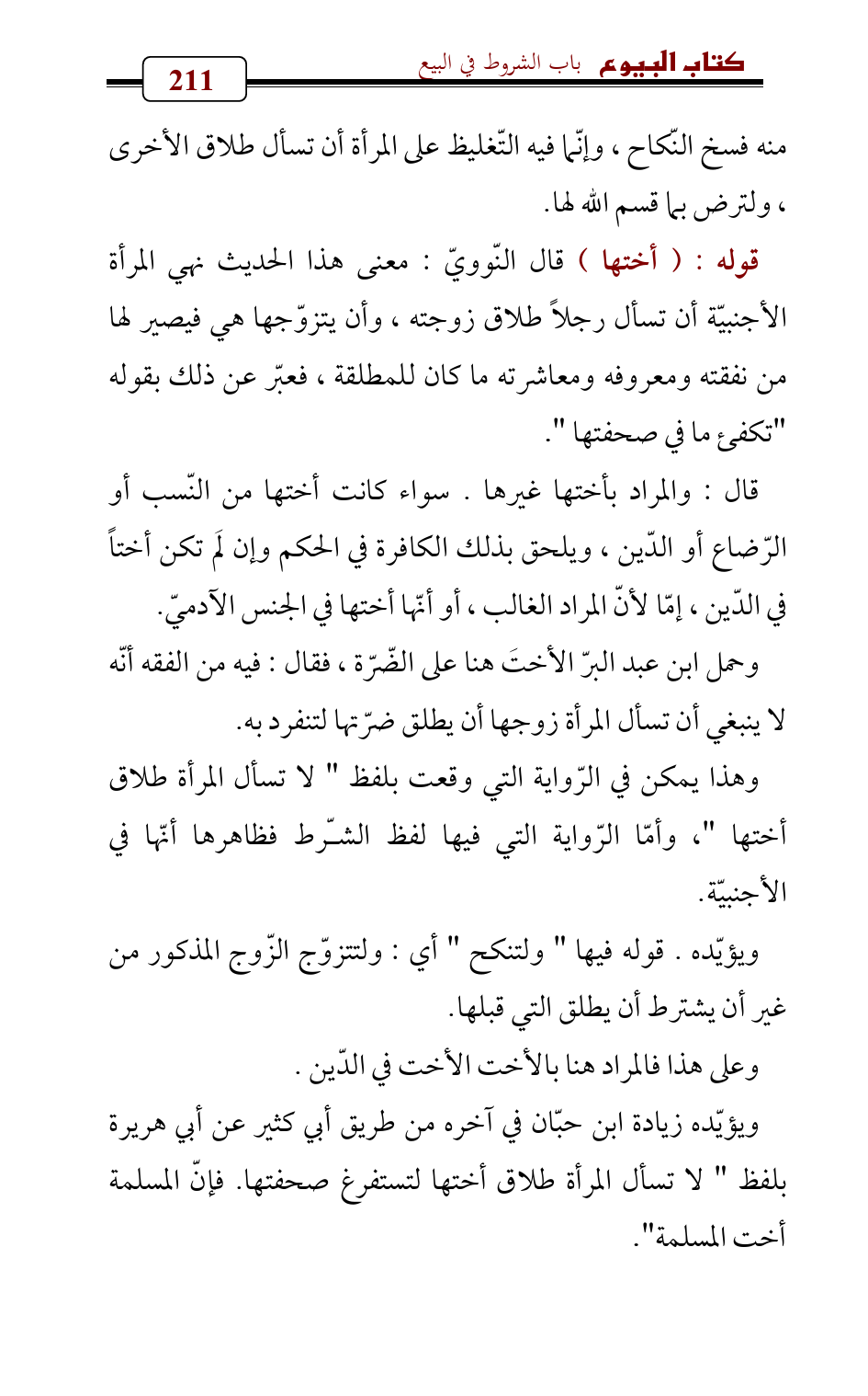 وحمل ابن عبد البرّ الأختَ هنا على الضّرّة , فقال: فيه من الفقه أنّه لا ينبغي أن تسأل المرأة زوجها أن يطلق ضرّتها لتنفرد به.