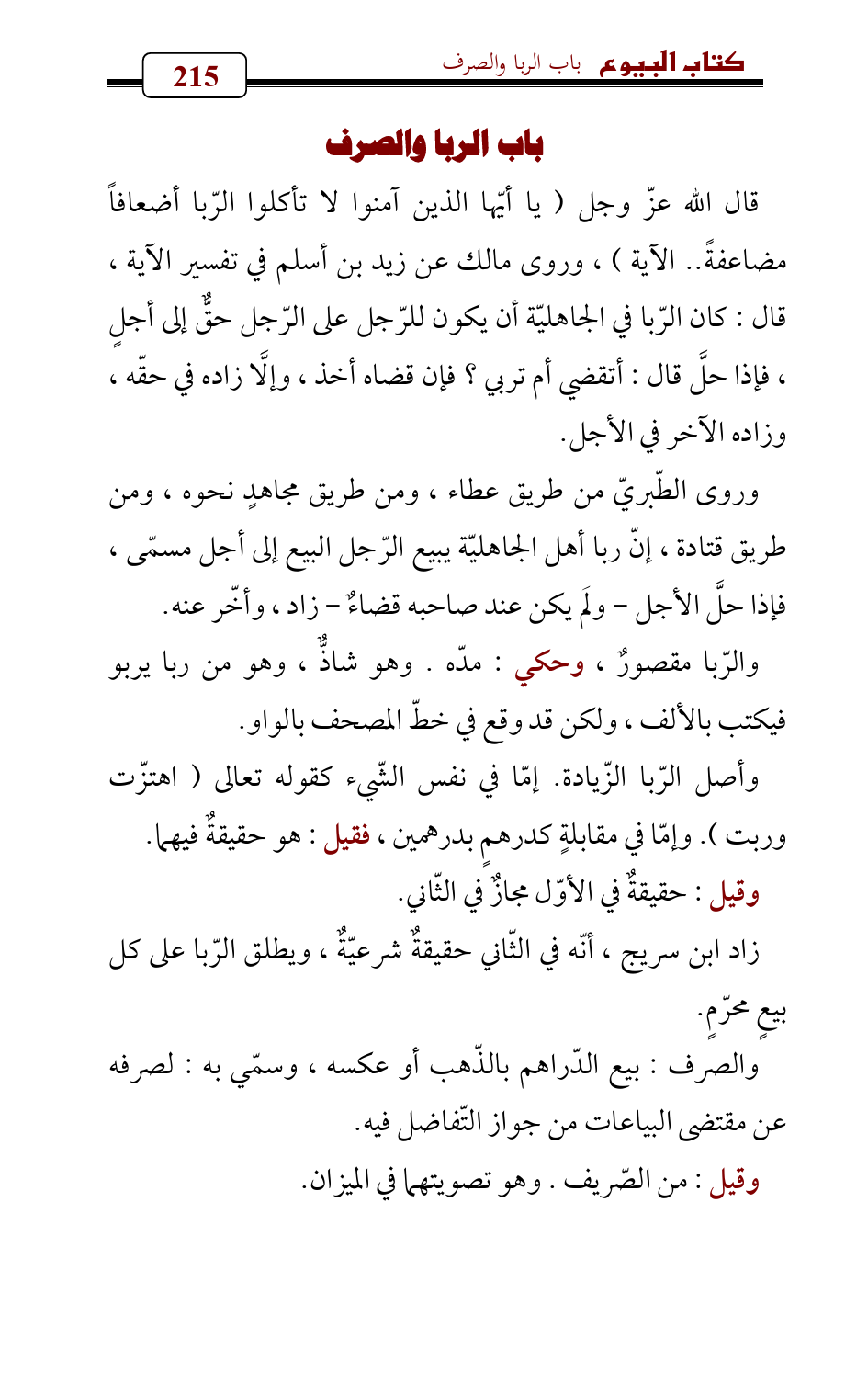 باب الربا والصرف