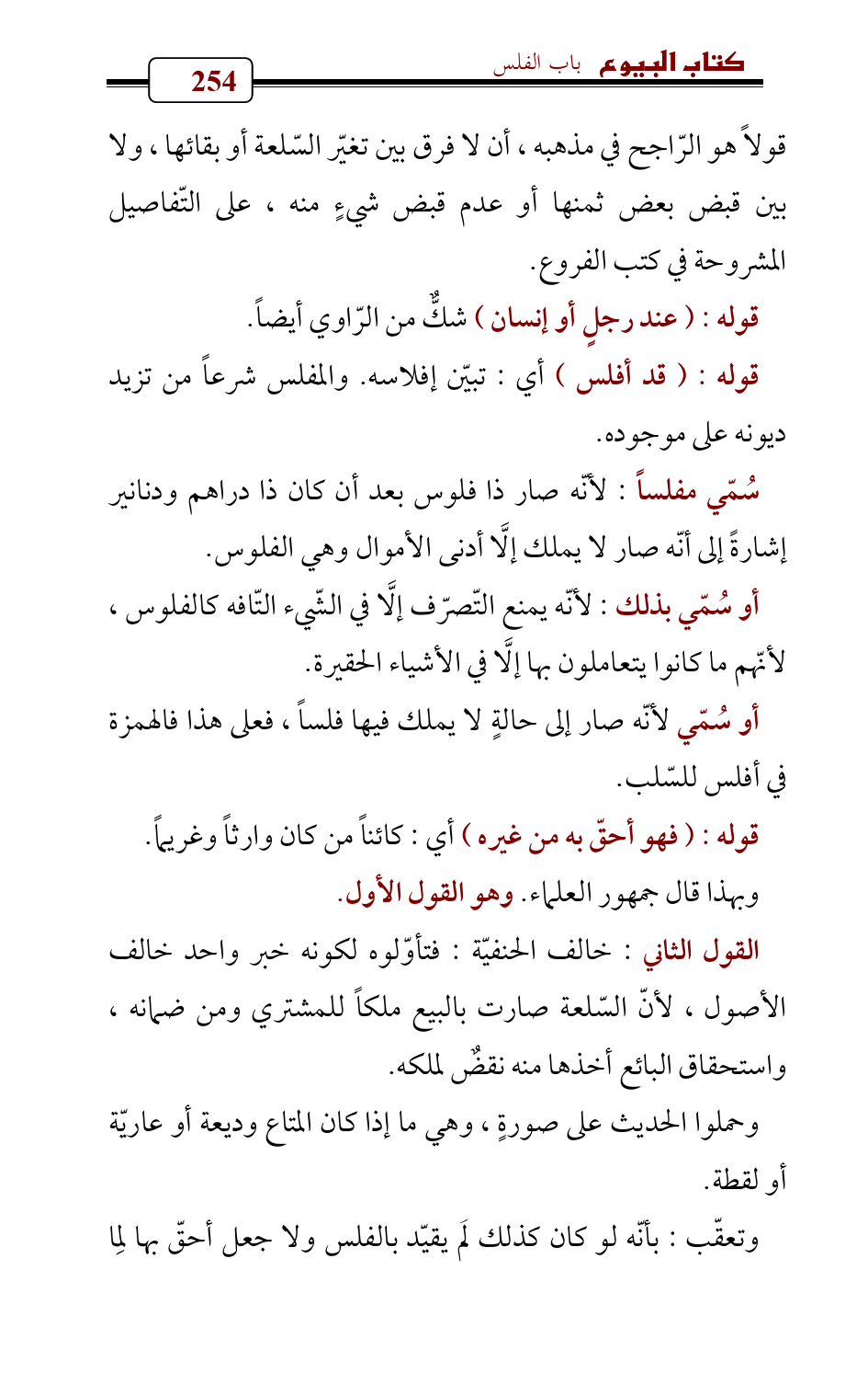 أو سُمّي لأنّه صار إلى حالةٍ لا يملك فيها فلساً، فعلى هذا فالهمزة في أفلس للسّلب.