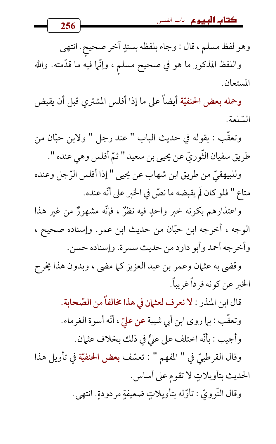وقال القرطبيّ في " المفهم ": تعسّف بعض الحنفيّة في تأويل هذا الحديث بتأويلاتٍ لا تقوم على أساس.