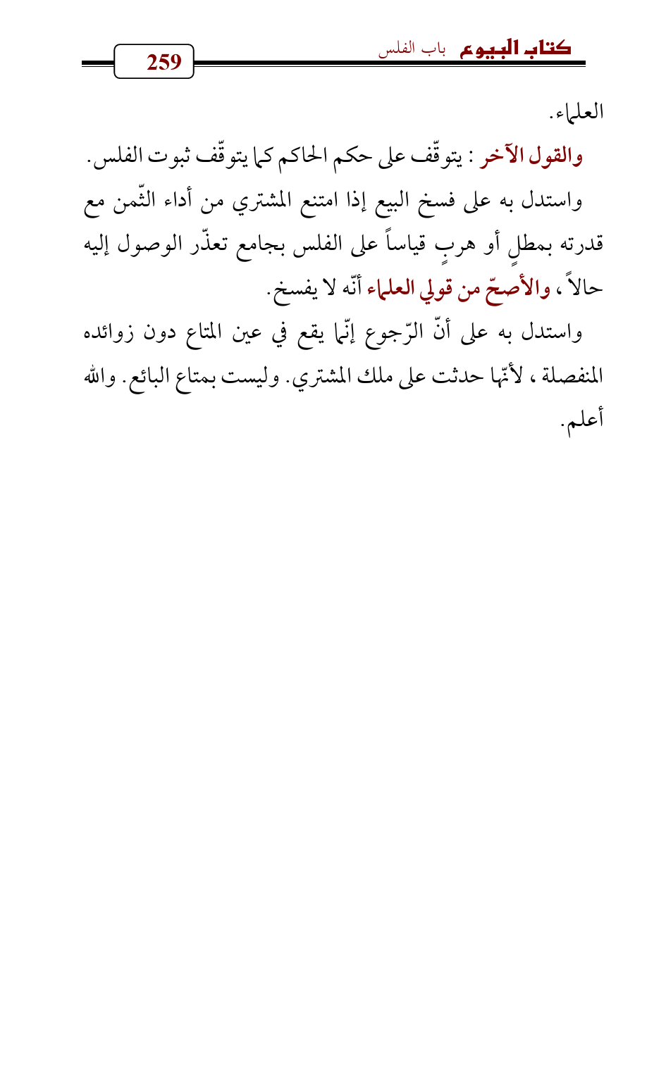 واستدل به على فسخ البيع إذا امتنع المشتري من أداء الثّمن مع قدرته بمطلٍ أو هربٍ قياساً على الفلس بجامع تعذّر الوصول إليه حالاً، والأصحّ من قولي العلماء أنّه لا يفسخ.