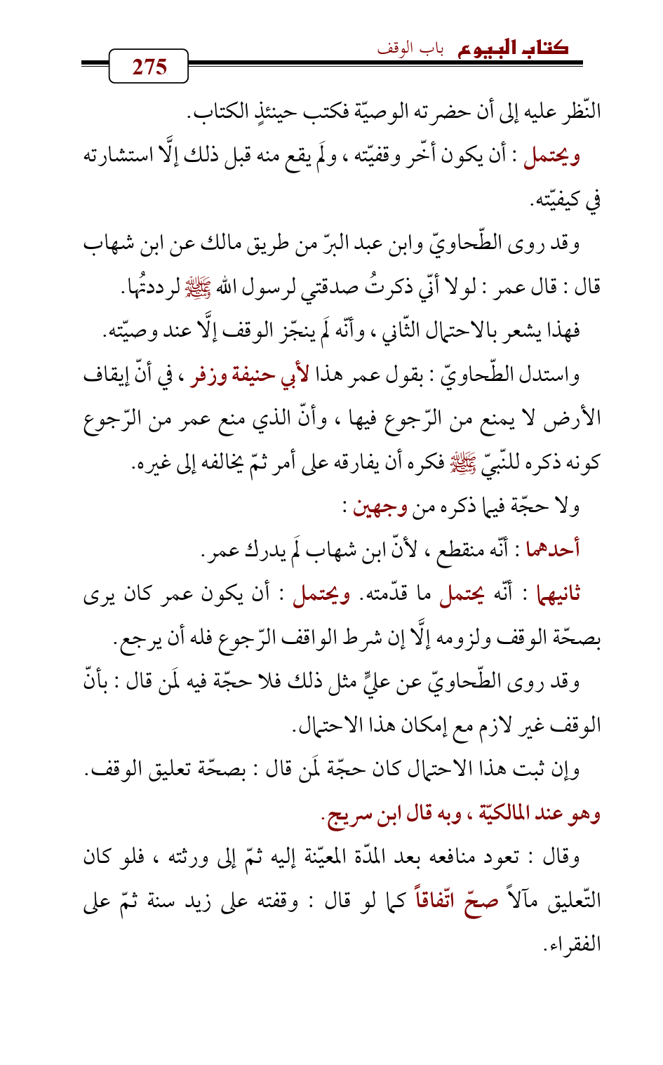 وقد روى الطّحاويّ عن عليٍّ مثل ذلك فلا حجّة فيه لمَن قال: بأنّ الوقف غير لازم مع إمكان هذا الاحتمال.