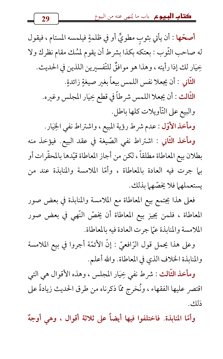 ومأخذ الثّالث: شرط نفي خِيَار المجلس، وهذه الأقوال هي التي اقتصر عليها الفقهاء، ونُخرج ممّا ذكرناه من طرق الحديث زيادةً على ذلك.