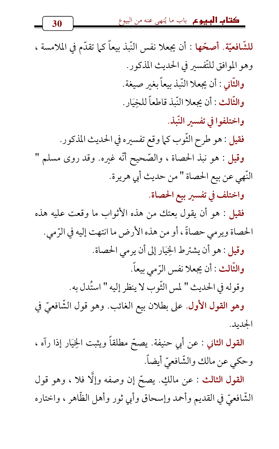 وقيل: هو نبذ الحصاة، والصّحيح أنّه غيره. وقد روى مسلم " النّهي عن بيع الحصاة " من حديث أبي هريرة.