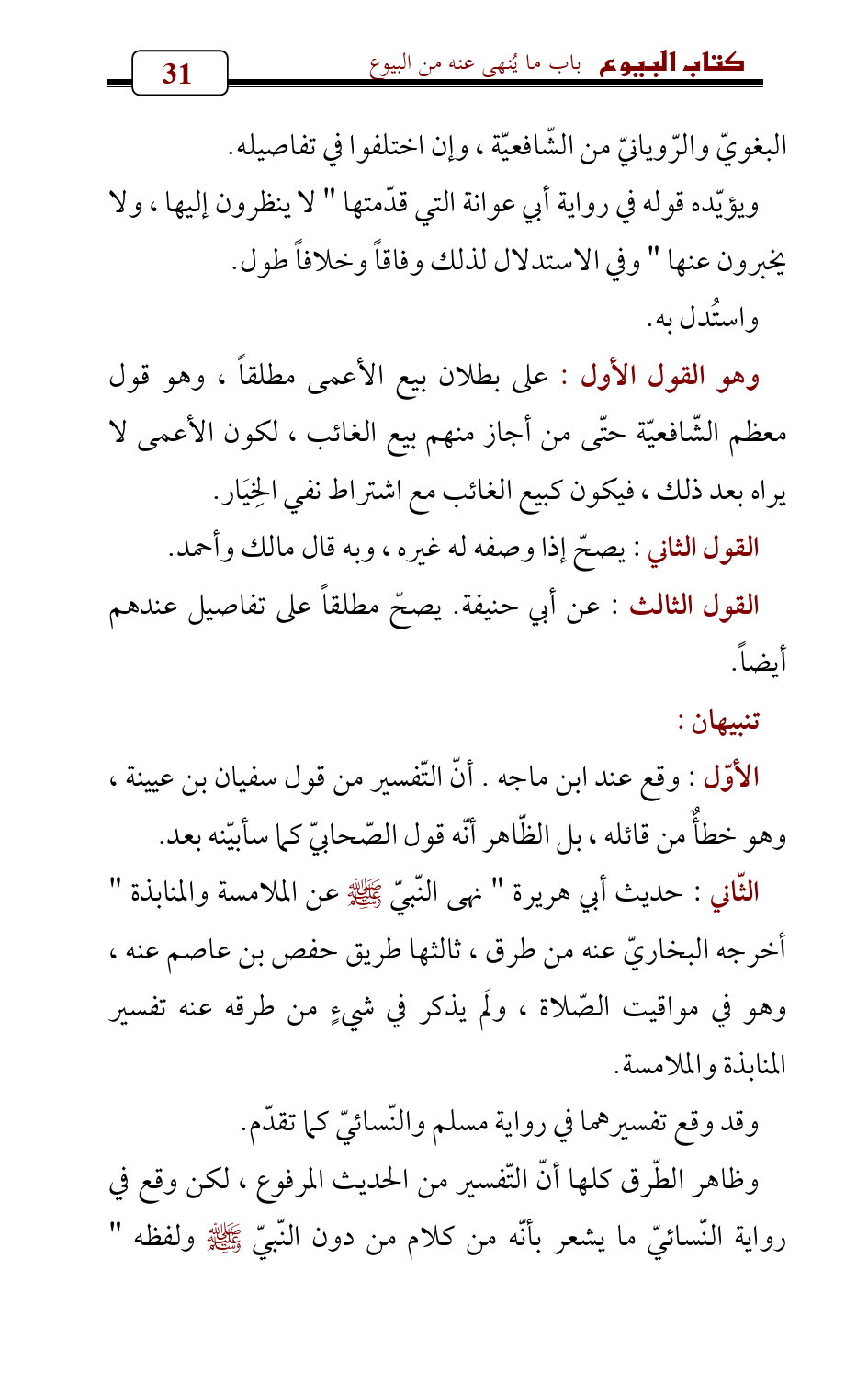 وهو القول الأول: على بطلان بيع الأعمى مطلقاً , وهو قول معظم الشّافعيّة حتّى من أجاز منهم بيع الغائب , لكون الأعمى لا يراه بعد ذلك , فيكون كبيع الغائب مع اشتراط نفي الخِيَار.
