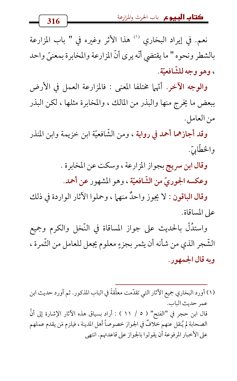 نعم. في إيراد البخاري (¬1) هذا الأثر وغيره في " باب المزارعة بالشطر ونحوه " ما يقتضي أنّه يرى أنّ المزارعة والمخابرة بمعنىً واحد، وهو وجه للشّافعيّة.