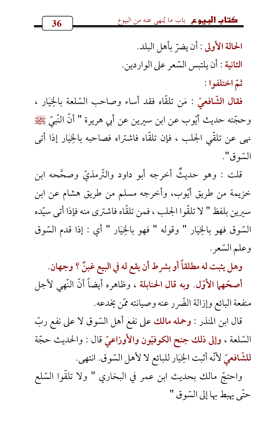 قلت: وهو حديثٌ أخرجه أبو داود والتّرمذيّ وصحَّحه ابن خزيمة من طريق أيّوب، وأخرجه مسلم من طريق هشام عن ابن سيرين بلفظ " لا تلقّوا الجلب، فمن تلقّاه فاشترى منه فإذا أتى سيّده السّوق فهو بالخِيَار " وقوله " فهو بالخِيَار " أي: إذا قدم السّوق وعلم السّعر.