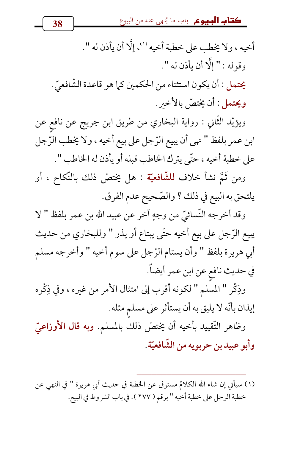 وظاهر التّقييد بأخيه أن يختصّ ذلك بالمسلم. وبه قال الأوزاعيّ وأبو عبيد بن حربويه من الشّافعيّة.