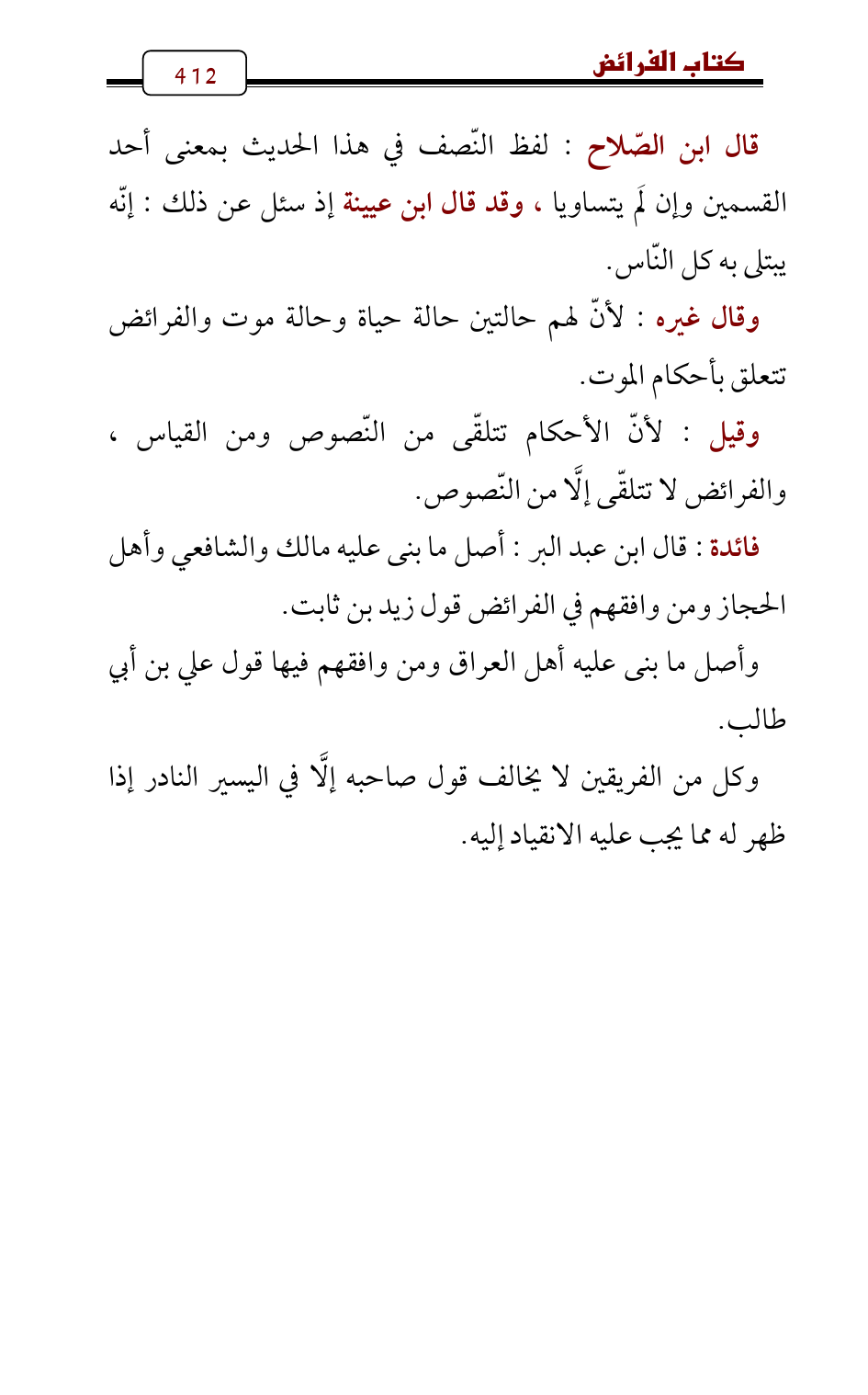 فائدة: قال ابن عبد البر: أصل ما بنى عليه مالك والشافعي وأهل الحجاز ومن وافقهم في الفرائض قول زيد بن ثابت.