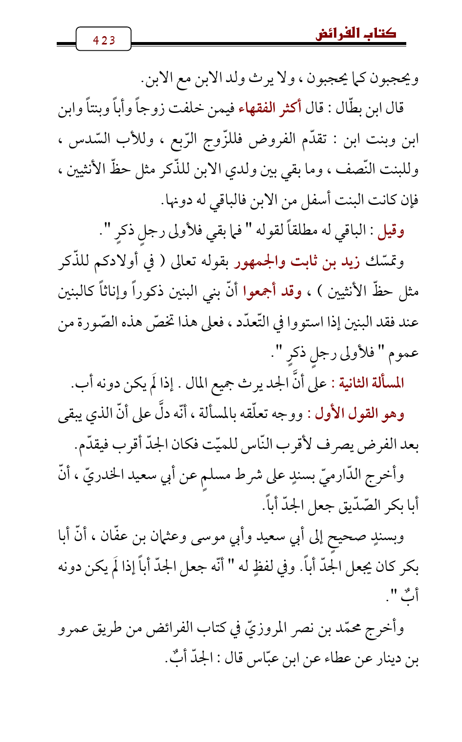 وأخرج محمّد بن نصر المروزيّ في كتاب الفرائض من طريق عمرو بن دينار عن عطاء عن ابن عبّاس قال: الجدّ أبٌ.