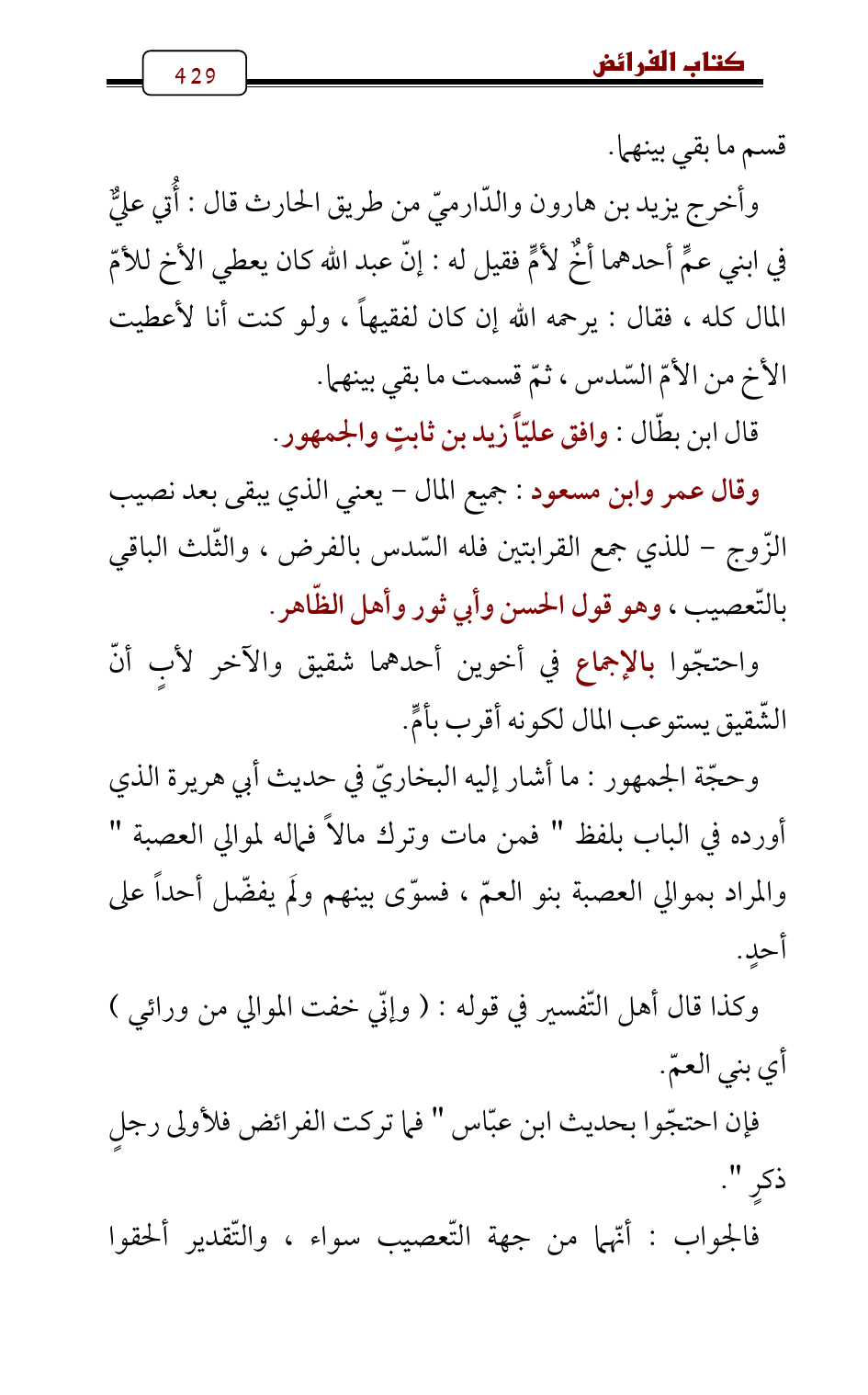 قال ابن بطّال: وافق عليّاً زيد بن ثابتٍ والجمهور.