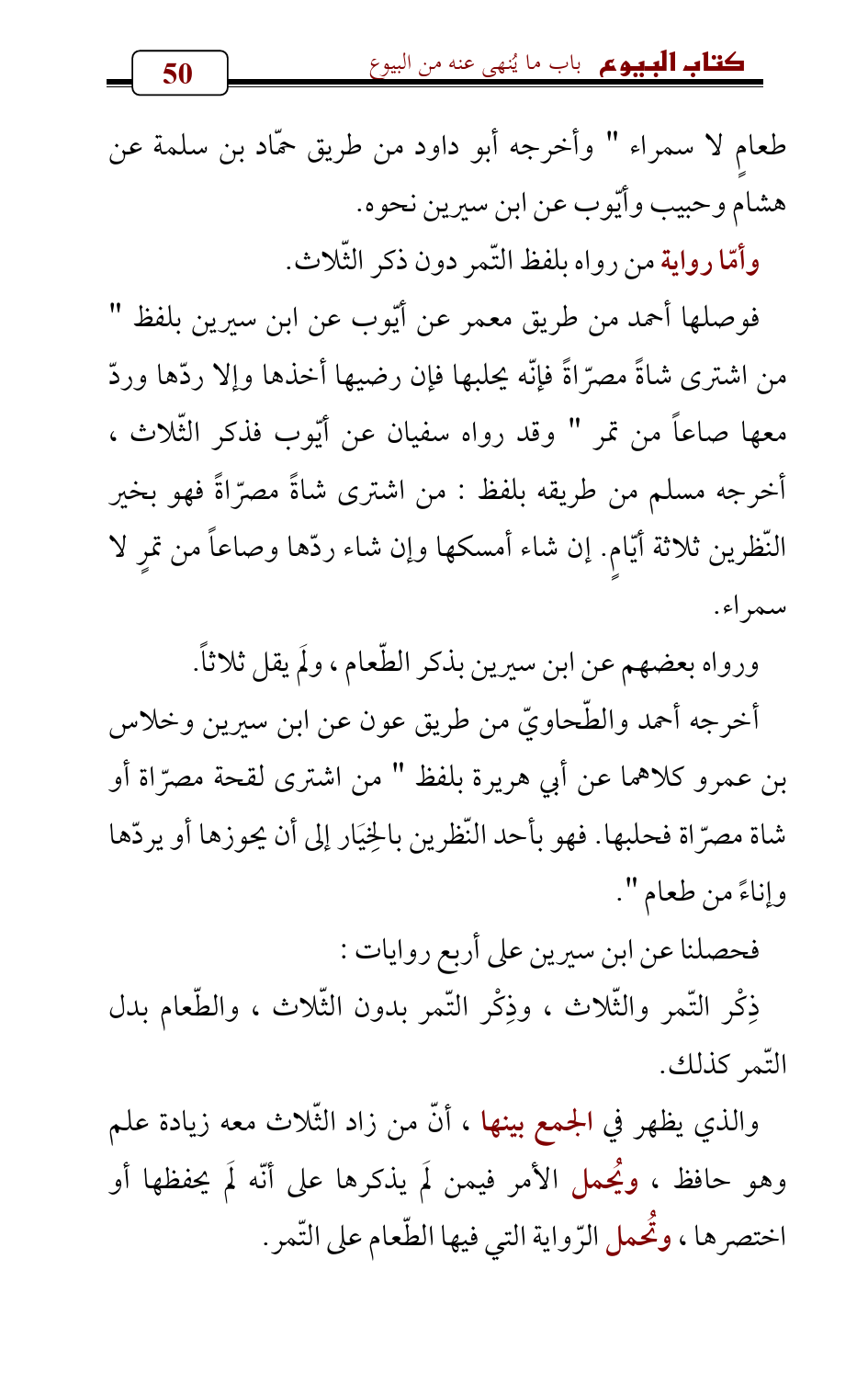 طعامٍ لا سمراء " وأخرجه أبو داود من طريق حمّاد بن سلمة عن هشام وحبيب وأيّوب عن ابن سيرين نحوه.