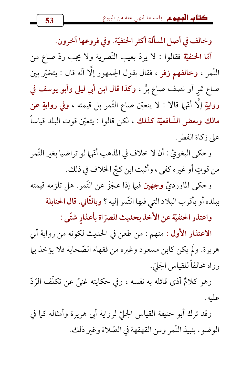 وقد ترك أبو حنيفة القياس الجليّ لرواية أبي هريرة وأمثاله كما في الوضوء بنبيذ التّمر ومن القهقهة في الصّلاة وغير ذلك.