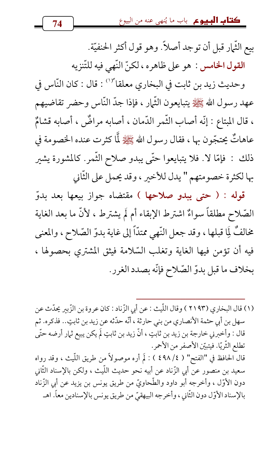 (¬1) قال البخاري (2193) وقال اللّيث: عن أبي الزّناد: كان عروة بن الزّبير يحدّث عن سهل بن أبي حثمة الأنصاري من بني حارثة , أنّه حدّثه عن زيد بن ثابتٍ .. فذكره. ثم قال: وأخبرني خارجة بن زيد بن ثابتٍ , أنّ زيد بن ثابتٍ لَم يكن يبيع ثمار أرضه حتّى تطلع الثّريّا. فيتبيّن الأصفر من الأحمر.