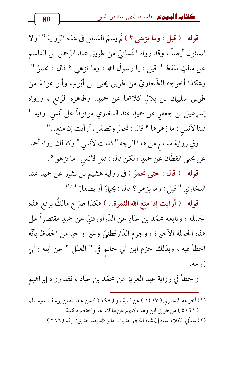 قوله: (قال: حتى تحمرّ) في رواية هشيم بن بشير عن حميد عند البخاري " قيل: وما يزهو؟ قال: يحمارّ أو يصفارّ " (¬2)