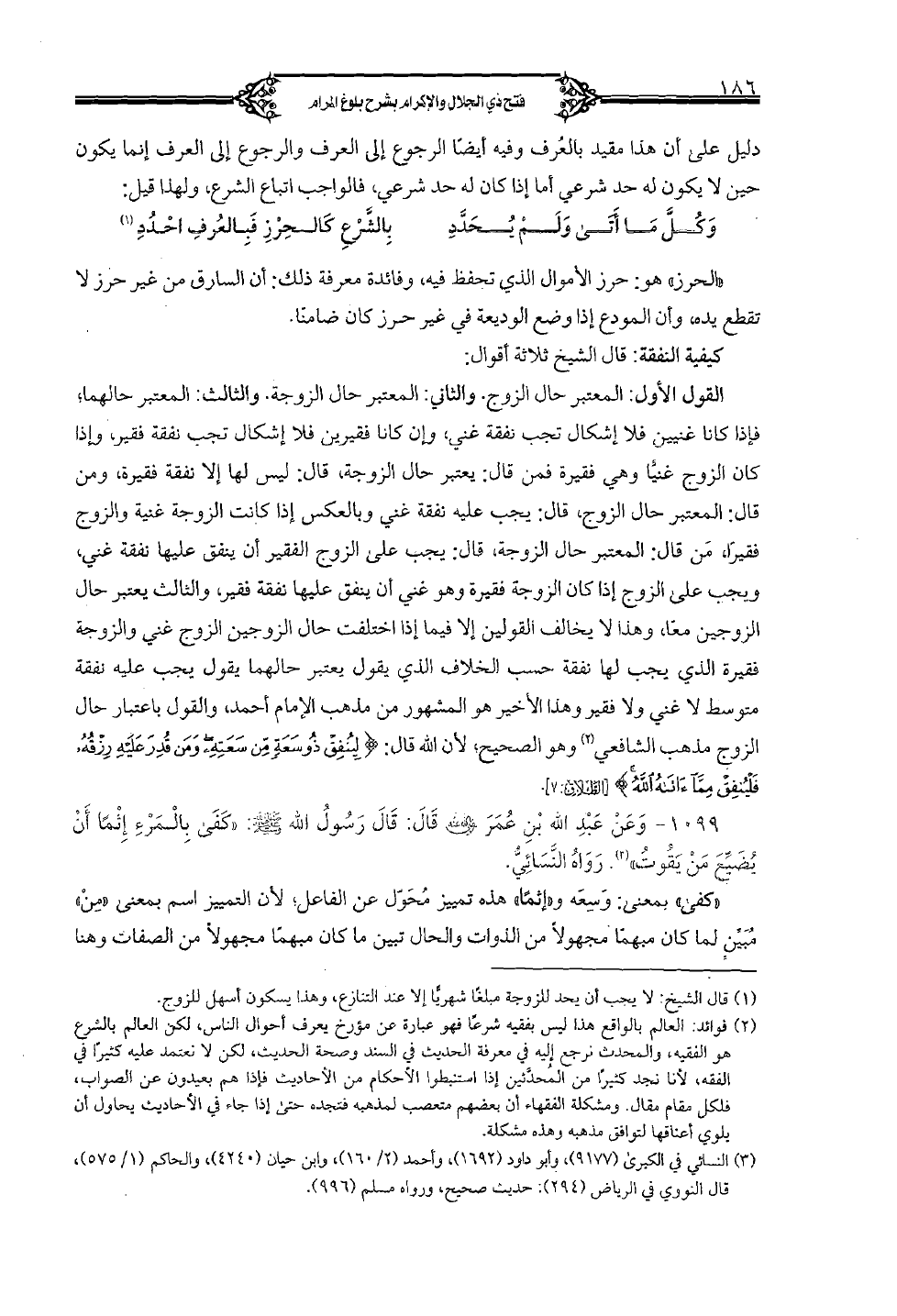 كيفية النفقة: قال الشيخ ثلاثة أقوال: