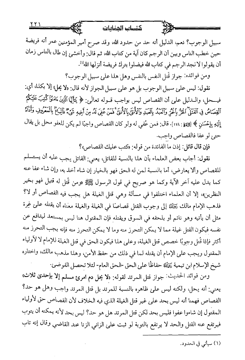 سبيل الوجوب؟ نعم، الدليل أنه حد من حدود الله، وقد صرح أمير المؤمنين عمر أنه فريضة حين خطب الناس وبين أن الرجم كان آية من كتاب الله، ثم قال: وأخشى إن طال بالناس زمان أن يقولوا لا نجد الرجم في كتاب الله فيضلوا بترك فريضة أنزلها الله.