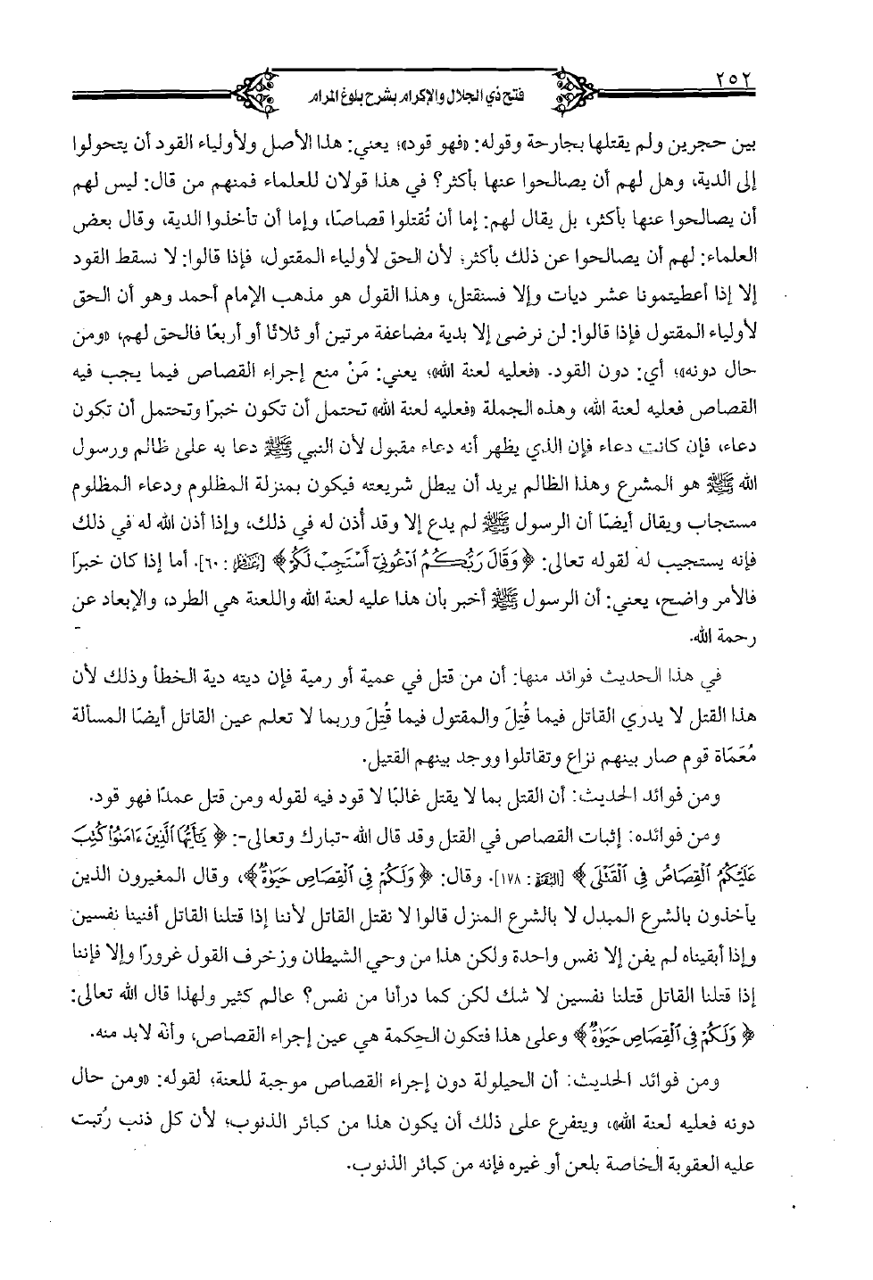 ومن فوائد الحديث: أن الحيلولة دون إجراء القصاص موجبة للعنة؛ لقوله: "ومن حال دون فعليه لعنة الله"، ويتفرع على ذلك أن يكون هذا من كبائر الذنوب؛ لأن كل ذنب رتبت عليه العقوبة الخاصة بلعن أو غيره فإنه من كبائر الذنوب.