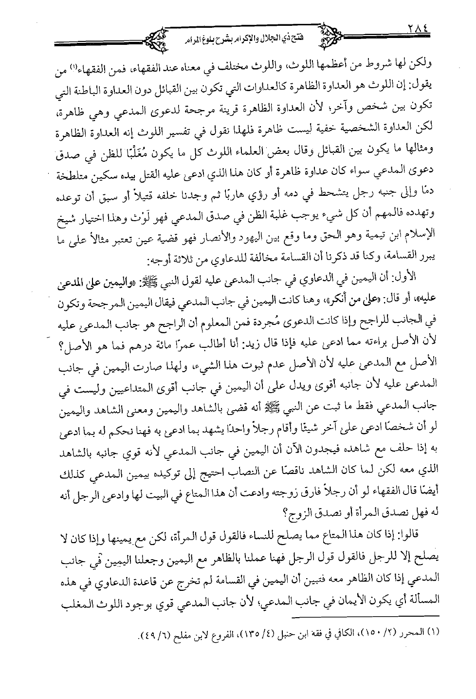 ولكن لها شروط من أعظمها اللوث، واللوث مختلف في معناه عند الفقهاء، فمن الفقهاء من يقول: إن اللوث هو العداوة الظاهرة كالعداوات التي تكون بين القبائل دون العداوة الباطنة التي تكون بين شخص وآخر، لأن العداوة الظاهرة قرينة مرجحة لدعوى المدعي وهي ظاهرة، لكن العداوة الشخصية خفية ليست ظاهرة فلهذا نقول في تفسير اللوث إنه العداوة الظاهرة ومثالها ما يكون بين القبائل وقال بعض العلماء اللوث كل ما يكون مغلبًا للظن في صدق دعوى المدعي سواء كان عداوة ظاهرة أو كان هذا الذي ادعى عليه القتل بيده سكين متلطخة دمًا وإلى جنبه رجل يتشحط في دمه أو رؤي هاربًا ثم وجدنا خلفه قتيلاً أو سبق أن توعده وتهدده فالمهم أن كل شيء يوجب غلبة الظن في صدق دعوى المدعي سواء كان عداوة ظاهرة أو كان هذا الذي ادعى عليه القتل بيده سكين متلخطة دمًا وإلى جنبه رجل يتشحط في دمه أو رؤي هاربًا ثم وجدنا خلفه قتيلاً أو سبق أن توعده وتهدد فالمهم أن كل شيء يوجب غلبة الظن في صدق المدعي فهو لّوث وهذا اختيار شيخ الإسلام ابن تيمية وهو الحق وما وقع بين اليهود والأنصار فهو قضية عين تعتبر مثالاً على ما يبرر القسامة، وكنا قد ذكرنا أن القسامة مخالفة للدعاوي من ثلاثة أوجه: