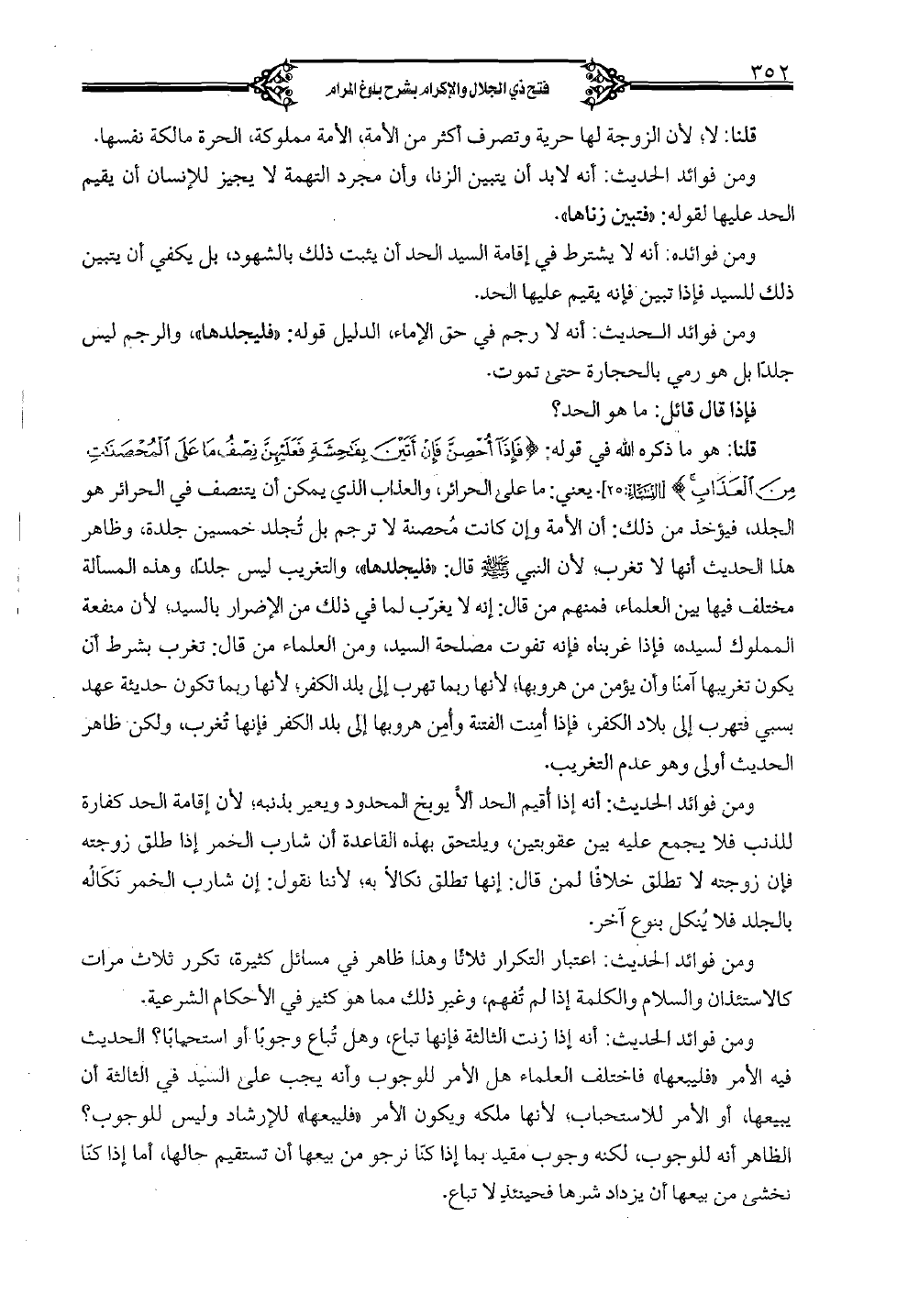 ومن فوائده: أنه لا يشترط في إقامة السيد الحد أن يثبت ذلك بالشهود، بل يكفي أن يتبين ذلك للسيد فإذا تبين فإنه يقيم عليها الحد.