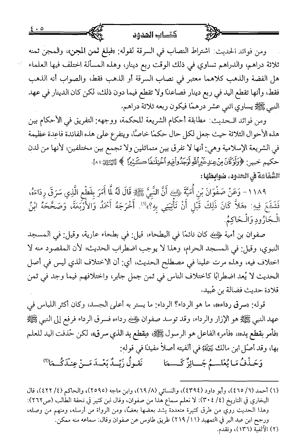 1189 - وعن صفوان بن أميَّة رضي الله عنه أنَّ النَّبيَّ صلى الله عليه وسلم قال له لمَّا أمر بقطع الَّذي سرق رداءه، فشفع فيه: "هلَّا كان ذلك قبل أن تأتيني به؟ ". أخرجه أحمد والأربعة، وصحَّحه ابن الجارود والحاكم.