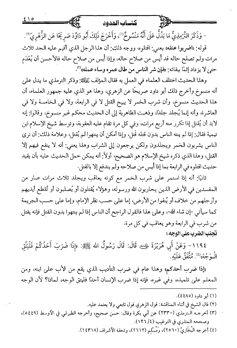 1194 - وعن أبي هريرة رضي الله عنه قال: قال رسول الله صلى الله عليه وسلم: "إذا ضرب أحدكم فليتَّق الوجه". متَّفقٌ عليه.