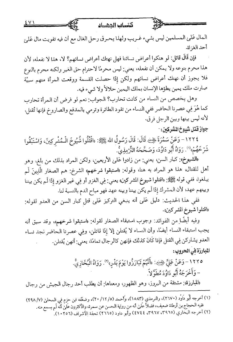 1224 - وعن سمرة (رضي الله عنه) قال: قال رسول الله (صلى الله عليه وسلم) {اقتلوا شيوخ المشركين، واستبقوا شرحهم} رواه أبو داود، وصححه الترمذي.