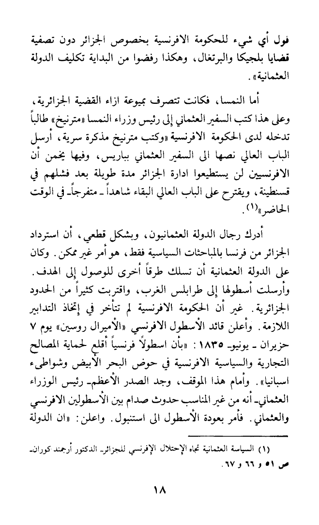 (¬1) السياسة العثمانية تجاه الإحتلال الإفرنسي للجزائر - الدكتور أرجمند كوران - ص51 و66 و67.