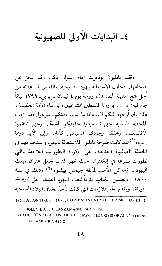 (¬1) CITATION TIRE DE (A «OUI LA PALESTINE ?) DE.J.P.MIGEON ET . J. JOLLY EDIT: J. LANZAMANN, PARIS. 1970.