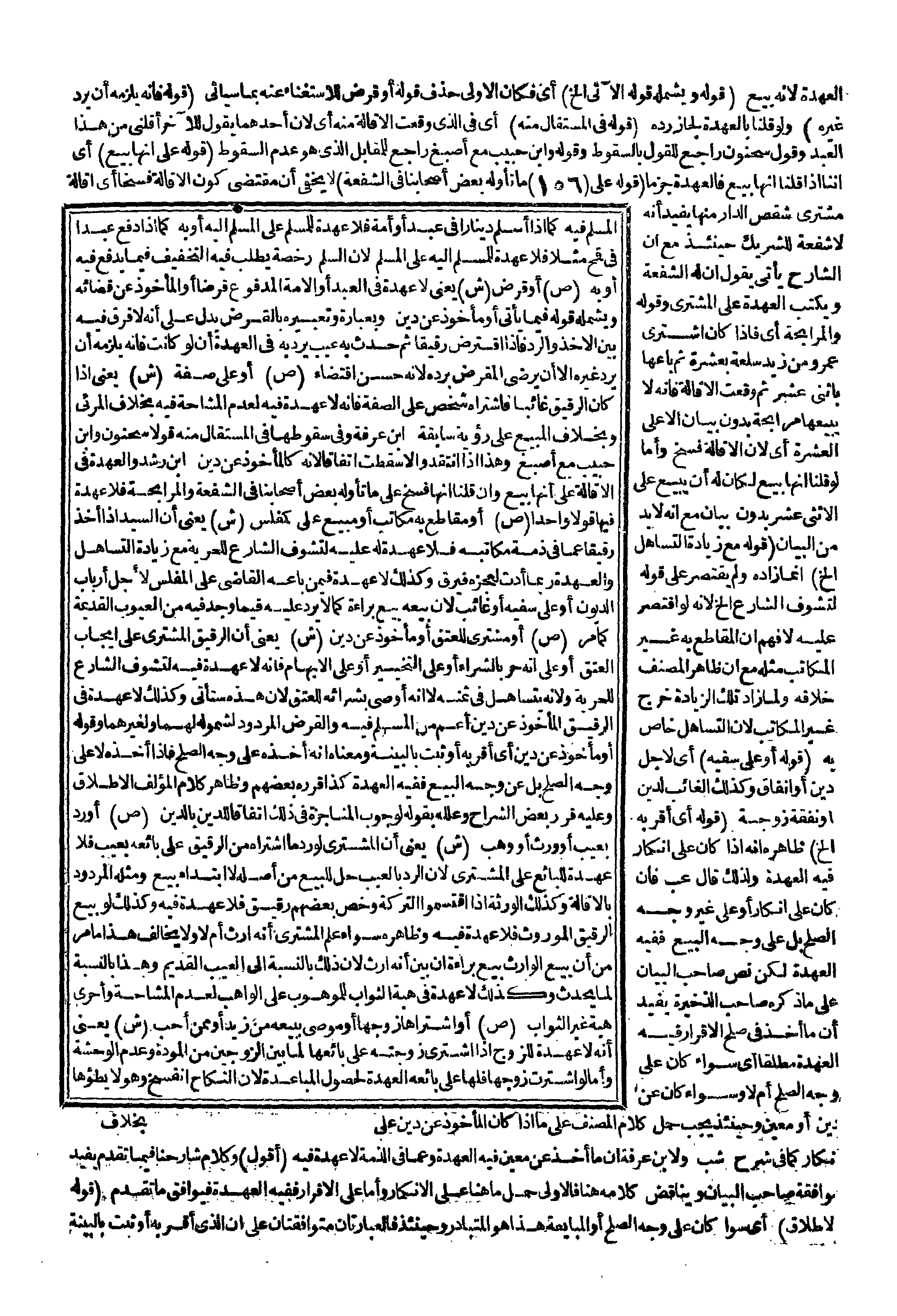 (قَوْلُهُ وَيَشْمَلُهُ قَوْلُهُ الْآتِي إلَخْ) أَيْ فَكَانَ الْأَوْلَى حَذْفَ قَوْلِهِ أَوْ قَرْضٍ لِلِاسْتِغْنَاءِ عَنْهُ بِمَا سَيَأْتِي (قَوْلُهُ فَإِنَّهُ يَلْزَمُهُ أَنْ يَرُدَّ غَيْرَهُ) وَلَوْ قُلْنَا بِالْعُهْدَةِ لَجَازَ رَدُّهُ (قَوْلُهُ فِي الْمُسْتَقَالِ مِنْهُ) أَيْ فِي الَّذِي وَقَعَتْ الْإِقَالَةُ مِنْهُ أَيْ لِأَنَّ أَحَدَهُمَا يَقُولُ لِلْآخَرِ أَقِلْنِي مِنْ هَذَا الْعَبْدِ، وَقَوْلُ سَحْنُونَ رَاجِعٌ لِلْقَوْلِ بِالسُّقُوطِ، وَقَوْلُهُ وَابْنُ حَبِيبٍ مَعَ أَصْبَغَ رَاجِعٌ لِلْمُقَابِلِ الَّذِي هُوَ عَدَمُ السُّقُوطِ (قَوْلُهُ عَلَى أَنَّهَا بَيْعٌ) أَيْ أَنَّنَا إذَا قُلْنَا إنَّهَا بَيْعٌ فَالْعُهْدَةُ جَزْمًا (قَوْلُهُ عَلَى مَا تَأَوَّلَهُ بَعْضُ أَصْحَابِنَا فِي الشُّفْعَةِ) لَا يَخْفَى أَنَّ مُقْتَضَى كَوْنِ الْإِقَالَةِ فَسْخًا أَيْ إقَالَةُ مُشْتَرِي شِقْصِ الدَّارِ مِنْهَا يُفِيدُ أَنَّهُ لَا شُفْعَةَ لِلشَّرِيكِ حِينَئِذٍ مَعَ أَنَّ الشَّارِحَ يَأْتِي يَقُولُ إنَّ لَهُ الشُّفْعَةَ، وَيَكْتُبُ الْعُهْدَةَ عَلَى الْمُشْتَرِي، وَقَوْلُهُ وَالْمُرَابَحَةُ أَيْ فَإِذَا كَانَ اشْتَرَى عَمْرٌو مِنْ زَيْدٍ سِلْعَةً بِعَشَرَةٍ ثُمَّ بَاعَهَا بِاثْنَيْ عَشَرَ ثُمَّ وَقَعَتْ الْإِقَالَةُ فَإِنَّهُ لَا يَبِيعُهَا مُرَابَحَةً بِدُونِ بَيَانٍ إلَّا عَلَى الْعَشَرَةِ أَيْ لِأَنَّ الْإِقَالَةَ فَسْخٌ، وَأَمَّا لَوْ قُلْنَا إنَّهَا بَيْعٌ لَكَانَ لَهُ أَنْ يَبِيعَ عَلَى الِاثْنَيْ عَشَرَ بِدُونِ بَيَانٍ مَعَ أَنَّهُ لَا بُدَّ مِنْ الْبَيَانِ (قَوْلُهُ مَعَ زِيَادَةِ التَّسَاهُلِ إلَخْ) إنَّمَا زَادَهُ، وَلَمْ يَقْتَصِرْ عَلَى قَوْلِهِ لِتَشَوُّفِ الشَّارِعِ إلَخْ لِأَنَّهُ لَوْ اقْتَصَرَ عَلَيْهِ لَأَفْهَمَ أَنَّ الْمُقَاطَعَ بِهِ غَيْرُ الْمُكَاتَبِ مِثْلُهُ مَعَ أَنَّ ظَاهِرَ الْمُصَنِّفِ خِلَافُهُ، وَلَمَّا زَادَ تِلْكَ الزِّيَادَةَ خَرَجَ غَيْرُ الْمُكَاتَبِ لِأَنَّ التَّسَاهُلَ خَاصٌّ بِهِ.