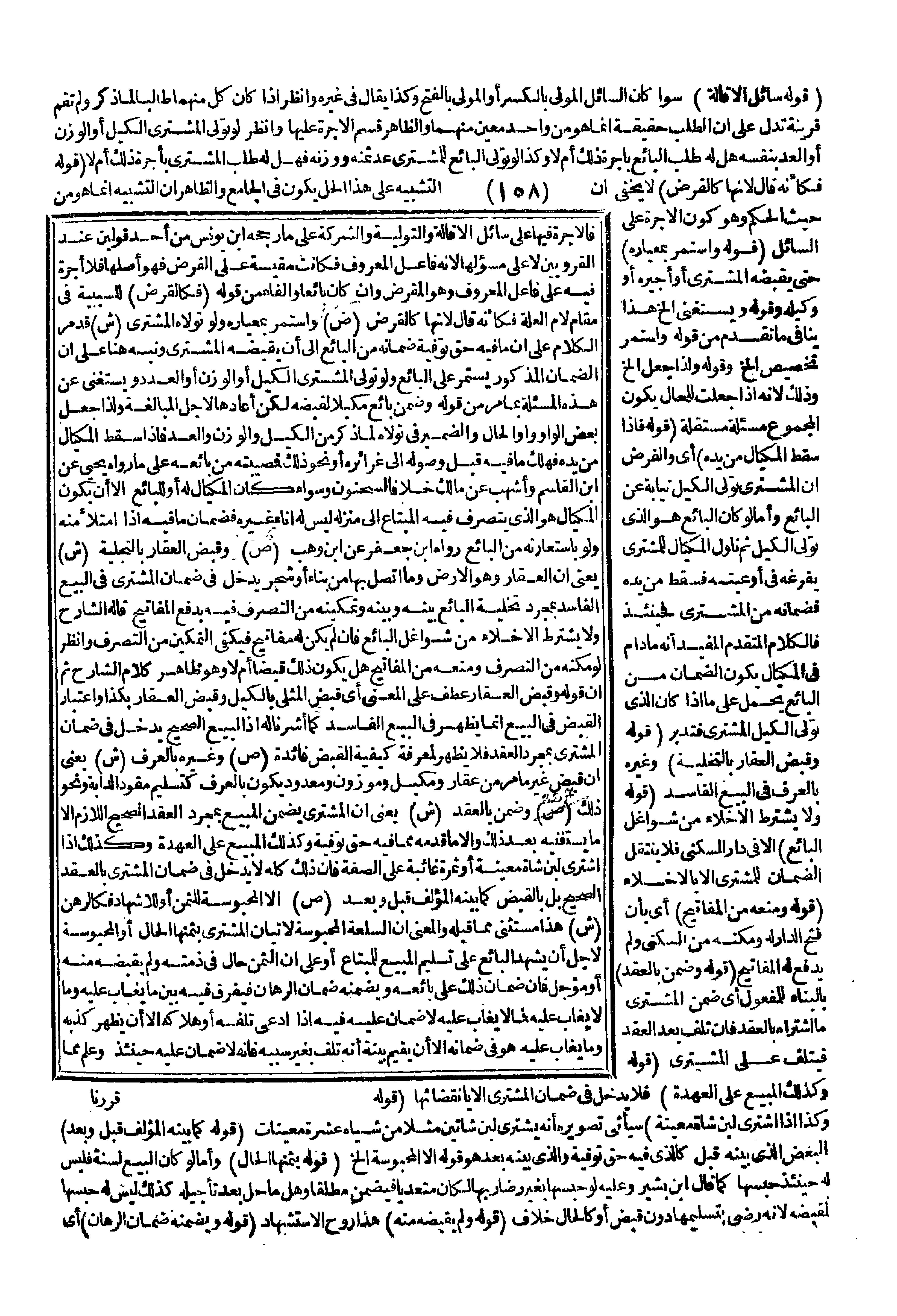 ـــــــــــــــــــــــــــــQقَوْلُهُ سَائِلُ الْإِقَالَةِ) سَوَاءٌ كَانَ السَّائِلُ الْمُوَلِّي بِالْكَسْرِ أَوْ الْمُوَلَّى بِالْفَتْحِ، وَكَذَا يُقَالُ فِي غَيْرِهِ، وَانْظُرْ إذَا كَانَ كُلٌّ مِنْهُمَا طَالِبًا لِمَا ذُكِرَ وَلَمْ تَقُمْ قَرِينَةٌ تَدُلُّ عَلَى أَنَّ الطَّلَبَ حَقِيقَةٌ إنَّمَا هُوَ مِنْ وَاحِدٍ مُعَيَّنٍ مِنْهُمَا، وَالظَّاهِرُ قَسْمُ الْأُجْرَةِ عَلَيْهَا، وَانْظُرْ لَوْ تَوَلَّى الْمُشْتَرِي الْكَيْلَ أَوْ الْوَزْنَ أَوْ الْعَدَّ بِنَفْسِهِ هَلْ لَهُ طَلَبُ الْبَائِعِ بِأُجْرَةِ ذَلِكَ أَمْ لَا، وَكَذَا لَوْ تَوَلَّى الْبَائِعُ لِلْمُشْتَرِي عَدَّ ثَمَنِهِ وَوَزْنَهُ فَهَلْ لَهُ طَلَبُ الْمُشْتَرِي بِأُجْرَةِ ذَلِكَ أَمْ لَا (قَوْلُهُ فَكَأَنَّهُ قَالَ لِأَنَّهَا كَالْقَرْضِ) لَا يَخْفَى أَنَّ التَّشْبِيهَ عَلَى هَذَا الْحَلِّ يَكُونُ فِي الْجَامِعِ، وَالظَّاهِرُ أَنَّ التَّشْبِيهَ إنَّمَا هُوَ مِنْ حَيْثُ الْحُكْمُ، وَهُوَ كَوْنُ الْأُجْرَةِ عَلَى السَّائِلِ (قَوْلُهُ وَاسْتَمَرَّ بِمِعْيَارِهِ) حَتَّى يَقْبِضَهُ الْمُشْتَرِي أَوْ أَجِيرُهُ أَوْ وَكِيلُهُ، وَقَوْلُهُ وَيُسْتَغْنَى إلَخْ هَذَا يُنَافِي مَا تَقَدَّمَ مِنْ قَوْلِهِ وَاسْتَمَرَّ تَخْصِيصُ إلَخْ، وَقَوْلُهُ وَلِذَا جُعِلَ إلَخْ، وَذَلِكَ لِأَنَّهُ إذَا جُعِلَتْ لِلْحَالِ يَكُونُ الْمَجْمُوعُ مَسْأَلَةً مُسْتَقِلَّةً (قَوْلُهُ فَإِذَا سَقَطَ الْمِكْيَالُ مِنْ يَدِهِ) أَيْ وَالْفَرْضُ أَنَّ الْمُشْتَرِيَ تَوَلَّى الْكَيْلَ نِيَابَةً عَنْ الْبَائِعِ، وَأَمَّا لَوْ كَانَ الْبَائِعُ هُوَ الَّذِي تَوَلَّى الْكَيْلَ ثُمَّ نَاوَلَ الْمِكْيَالَ لِلْمُشْتَرِي يُفْرِغُهُ فِي أَوْعِيَتِهِ فَسَقَطَ مِنْ يَدِهِ فَضَمَانُهُ مِنْ الْمُشْتَرِي فَحِينَئِذٍ فَالْكَلَامُ الْمُتَقَدِّمُ الْمُفِيدُ أَنَّهُ مَا دَامَ فِي الْمِكْيَالِ يَكُونُ الضَّمَانُ مِنْ الْبَائِعِ يُحْمَلُ عَلَى مَا إذَا كَانَ الَّذِي تَوَلَّى الْكَيْلَ الْمُشْتَرِي فَتَدَبَّرْ.
