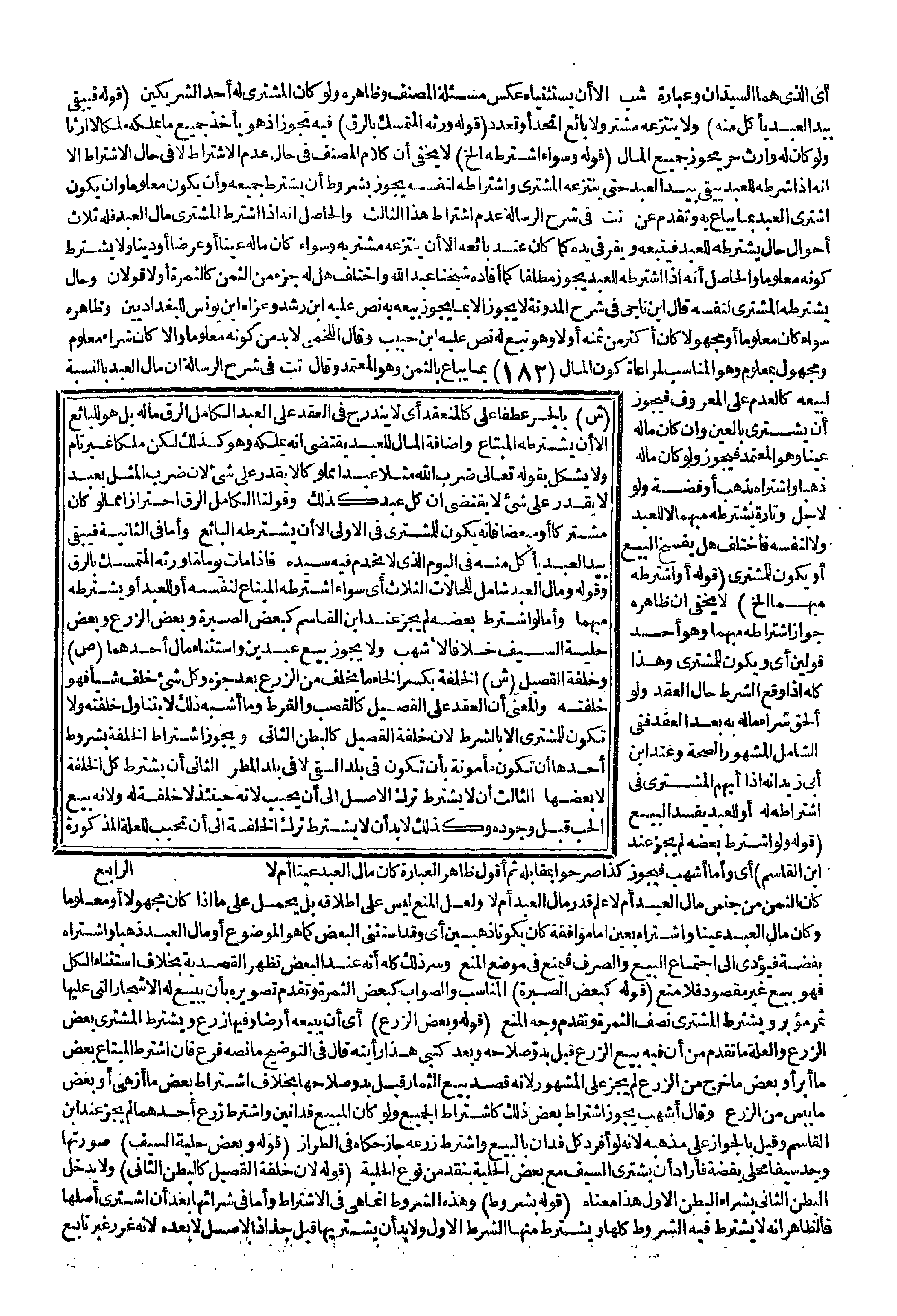 وَقَالَ تت فِي شَرْحِ الرِّسَالَةِ إنَّ مَالَ الْعَبْدِ بِالنِّسْبَةِ لِبَيْعِهِ كَالْعَدَمِ عَلَى الْمَعْرُوفِ فَيَجُوزُ أَنْ يَشْتَرِيَ بِالْعَيْنِ، وَإِنْ كَانَ مَالُهُ عَيْنًا، وَهُوَ الْمُعْتَمَدُ فَيَجُوزُ، وَلَوْ كَانَ مَالُهُ ذَهَبًا، وَاشْتَرَاهُ بِذَهَبٍ أَوْ فِضَّةٍ، وَلَوْ لِأَجَلٍ، وَتَارَةً يَشْتَرِطُهُ مُبْهَمًا لَا لِلْعَبْدِ، وَلَا لِنَفْسِهِ فَاخْتُلِفَ هَلْ يُفْسَخُ الْبَيْعُ أَوْ يَكُونُ لِلْمُشْتَرِي (قَوْلُهُ أَوْ اشْتَرَطَهُ مُبْهَمًا إلَخْ) لَا يَخْفَى أَنَّ ظَاهِرَهُ جَوَازُ اشْتِرَاطِهِ مُبْهَمًا، وَهُوَ أَحَدُ قَوْلَيْنِ أَيْ وَيَكُونُ لِلْمُشْتَرِي، وَهَذَا كُلُّهُ إذَا وَقَعَ الشَّرْطُ حَالَ الْعَقْدِ، وَلَوْ أُلْحِقَ شِرَاءُ مَالِهِ بِهِ بَعْدَ الْعَقْدِ فَفِي الشَّامِلِ الْمَشْهُورِ الصِّحَّةُ، وَعِنْدَ ابْنِ أَبِي زَيْدٍ أَنَّهُ إذَا أَبْهَمَ الْمُشْتَرِي فِي اشْتِرَاطِهِ لَهُ أَوْ لِلْعَبْدِ يَفْسُدُ الْبَيْعُ (قَوْلُهُ وَلَوْ اشْتَرَطَ بَعْضَهُ لَمْ يَجُزْ عِنْدَ ابْنِ الْقَاسِمِ) أَيْ وَأَمَّا أَشْهَبُ فَيَجُوزُ كَذَا صَرَّحُوا بِمُقَابِلِهِ ثُمَّ أَقُولُ ظَاهِرُ الْعِبَارَةِ كَانَ مَالُ الْعَبْدِ عَيْنًا أَمْ لَا كَانَ الثَّمَنُ مِنْ جِنْسِ مَالِ الْعَبْدِ أَمْ لَا، عَلِمَ قَدْرَ مَالِ الْعَبْدِ أَمْ لَا.