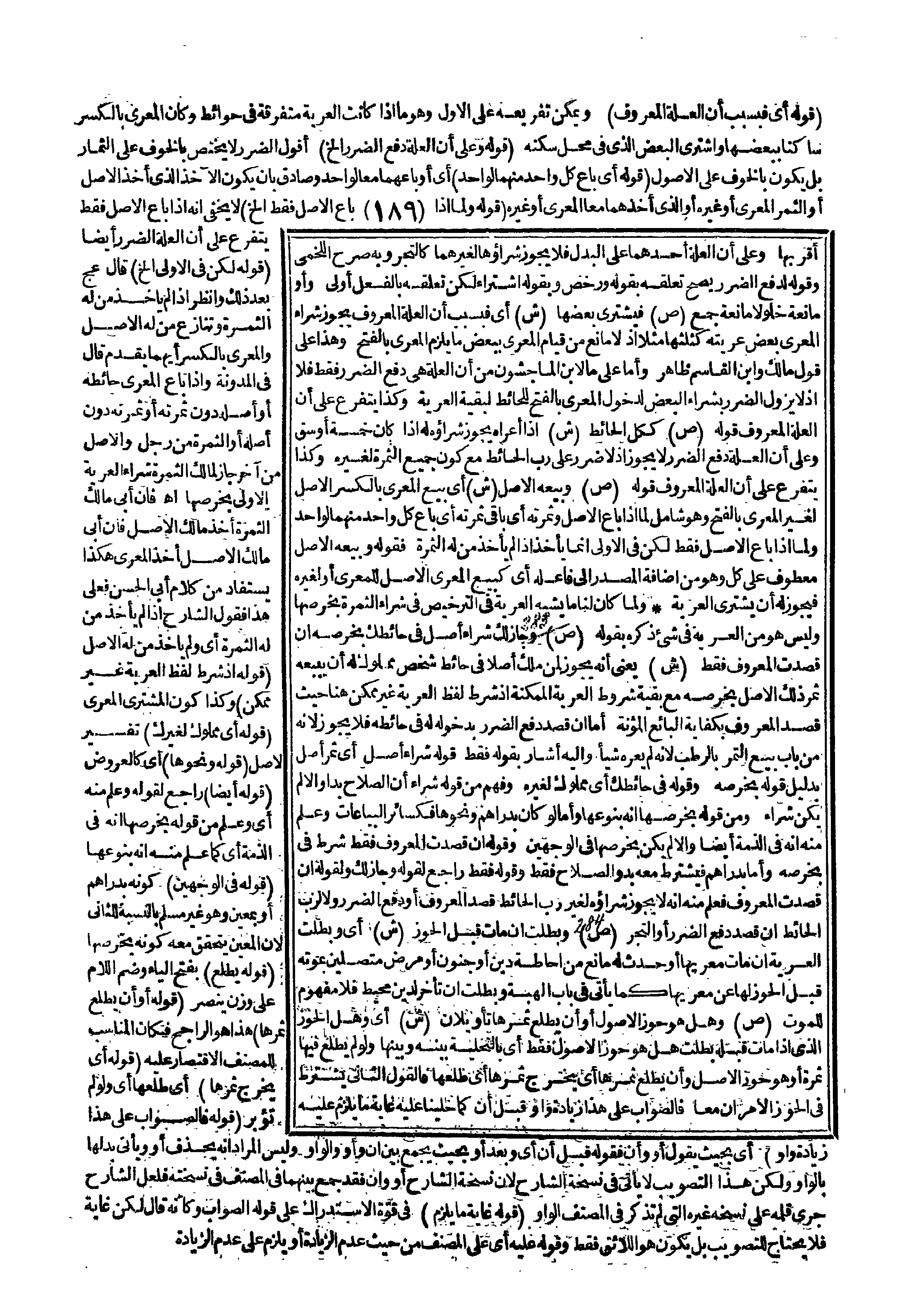 أَقْرَبُهَا، وَعَلَى أَنَّ الْعِلَّةَ أَحَدُهُمَا عَلَى الْبَدَلِ فَلَا يَجُوزُ شِرَاؤُهَا لِغَيْرِهِمَا كَالتَّجْرِ، وَبِهِ صَرَّحَ اللَّخْمِيُّ، وَقَوْلُهُ لِدَفْعِ الضَّرَرِ يَصِحُّ تَعَلُّقُهُ بِقَوْلِهِ وَرُخِّصَ، وَبِقَوْلِهِ اشْتِرَاءُ لَكِنَّ تَعَلُّقَهُ بِالْفِعْلِ أَوْلَى، وَأَوْ مَانِعَةُ خُلُوٍّ لَا مَانِعَةُ جَمْعٍ (ص) فَيَشْتَرِي بَعْضَهَا (ش) أَيْ فَبِسَبَبِ أَنَّ الْعِلَّةَ الْمَعْرُوفُ يَجُوزُ شِرَاءُ الْمُعْرِي بَعْضَ عَرِيَّتِهِ كَثُلُثِهَا مَثَلًا إذْ لَا مَانِعَ مِنْ قِيَامِ الْمُعْرِي بِبَعْضِ مَا يَلْزَمُ الْمُعْرَى بِالْفَتْحِ، وَهَذَا عَلَى قَوْلِ مَالِكٍ وَابْنِ الْقَاسِمِ ظَاهِرٌ، وَأَمَّا عَلَى مَا لِابْنِ الْمَاجِشُونِ مِنْ أَنَّ الْعِلَّةَ هِيَ دَفْعُ الضَّرَرِ فَقَطْ فَلَا إذْ لَا يَزُولُ الضَّرَرُ بِشِرَاءِ الْبَعْضِ لِدُخُولِ الْمُعْرَى بِالْفَتْحِ لِلْحَائِطِ لِبَقِيَّةِ الْعَرِيَّةِ، وَكَذَا يَتَفَرَّعُ عَلَى أَنَّ الْعِلَّةَ الْمَعْرُوفُ قَوْلُهُ (ص) كَكُلِّ الْحَائِطِ (ش) إذَا أَعْرَاهُ يَجُوزُ شِرَاؤُهُ لَهُ إذَا كَانَ خَمْسَةَ أَوْسُقٍ، وَعَلَى أَنَّ الْعِلَّةَ دَفْعُ الضَّرَرِ لَا يَجُوزُ إذْ لَا ضَرَرَ عَلَى رَبِّ الْحَائِطِ مَعَ كَوْنِ جَمِيعِ الثَّمَرَةِ لِغَيْرِهِ، وَكَذَا يَتَفَرَّعُ عَلَى أَنَّ الْعِلَّةَ الْمَعْرُوفُ قَوْلُهُ (ص) وَبَيْعُهُ الْأَصْلَ (ش) أَيْ بَيْعُ الْمُعْرِي بِالْكَسْرِ الْأَصْلَ لِغَيْرِ الْمُعْرَى بِالْفَتْحِ، وَهُوَ شَامِلٌ لِمَا إذَا بَاعَ الْأَصْلَ، وَثَمَرَتَهُ أَيْ بَاقِي ثَمَرَتِهِ أَيْ بَاعَ كُلُّ، وَاحِدٍ مِنْهُمَا لِوَاحِدٍ، وَلِمَا إذَا بَاعَ الْأَصْلَ فَقَطْ لَكِنْ فِي الْأُولَى إنَّمَا يَأْخُذُ إذَا لَمْ يَأْخُذْ مَنْ لَهُ الثَّمَرَةُ فَقَوْلُهُ وَبَيْعُهُ الْأَصْلَ مَعْطُوفٌ عَلَى كُلُّ، وَهُوَ مِنْ إضَافَةِ الْمَصْدَرِ إلَى فَاعِلِهِ أَيْ كَبَيْعِ الْمُعْرِي الْأَصْلَ لِلْمُعْرَى أَوْ لِغَيْرِهِ فَيَجُوزُ لَهُ أَنْ يَشْتَرِيَ الْعَرِيَّةَ
