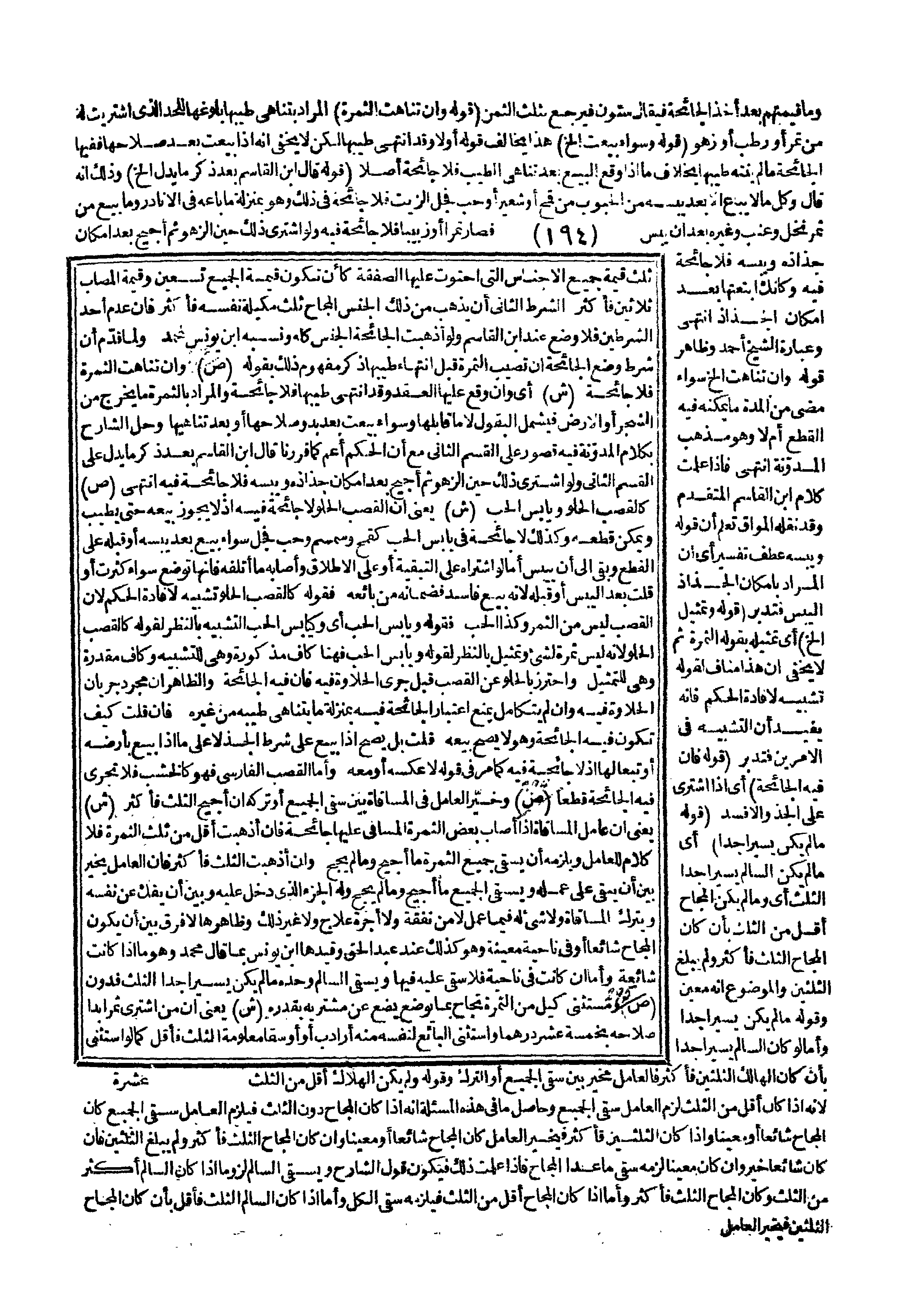 ثُلُثَ قِيمَةِ جَمِيعِ الْأَجْنَاسِ الَّتِي احْتَوَتْ عَلَيْهَا الصَّفْقَةُ كَأَنْ تَكُونَ قِيمَةُ الْجَمِيعِ تِسْعِينَ، وَقِيمَةُ الْمُصَابِ ثَلَاثِينَ فَأَكْثَرَ الشَّرْطُ الثَّانِي أَنْ يَذْهَبَ مِنْ ذَلِكَ الْجِنْسِ الْمُجَاحِ ثُلُثُ مَكِيلَةِ نَفْسِهِ فَأَكْثَرَ فَإِنْ عُدِمَ أَحَدُ الشَّرْطَيْنِ فَلَا وَضْعَ عِنْدَ ابْنِ الْقَاسِمِ، وَلَوْ أَذْهَبَتْ الْجَائِحَةُ الْجِنْسَ كُلَّهُ، وَنَسَبَهُ ابْنُ يُونُسَ لِمُحَمَّدٍ