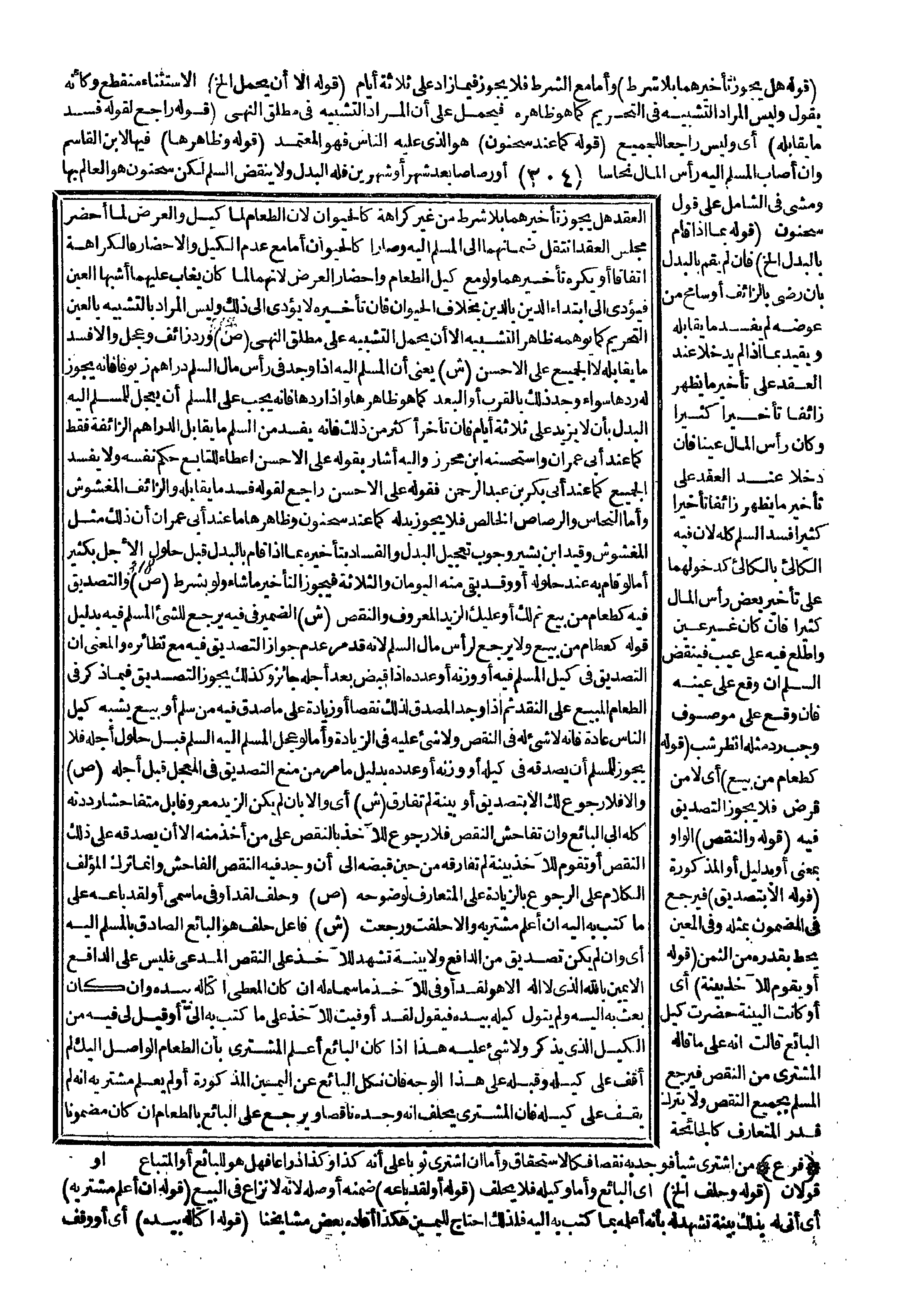 الْعَقْدِ هَلْ يَجُوزُ تَأْخِيرُهُمَا بِلَا شَرْطٍ مِنْ غَيْرِ كَرَاهَةٍ كَالْحَيَوَانِ لِأَنَّ الطَّعَامَ لَمَّا كِيلَ، وَالْعَرْضُ لَمَّا أُحْضِرَ مَجْلِسَ الْعَقْدِ انْتَقَلَ ضَمَانُهُمَا إلَى الْمُسْلَمِ إلَيْهِ، وَصَارَا كَالْحَيَوَانِ أَمَّا مَعَ عَدَمِ الْكَيْلِ وَالْإِحْضَارِ فَالْكَرَاهَةُ اتِّفَاقًا أَوْ يُكْرَهُ تَأْخِيرُهُمَا، وَلَوْ مَعَ كَيْلِ الطَّعَامِ وَإِحْضَارِ الْعَرْضِ لِأَنَّهُمَا لَمَّا كَانَ يُغَابُ عَلَيْهِمَا أَشْبَهَا الْعَيْنَ فَيُؤَدِّي إلَى ابْتِدَاءِ الدَّيْنِ بِالدَّيْنِ بِخِلَافِ الْحَيَوَانِ فَإِنَّ تَأْخِيرَهُ لَا يُؤَدِّي إلَى ذَلِكَ، وَلَيْسَ الْمُرَادُ بِالتَّشْبِيهِ بِالْعَيْنِ التَّحْرِيمَ كَمَا يُوهِمُهُ ظَاهِرُ التَّشْبِيهِ إلَّا أَنْ يُحْمَلَ التَّشْبِيهُ عَلَى مُطْلَقِ النَّهْيِ