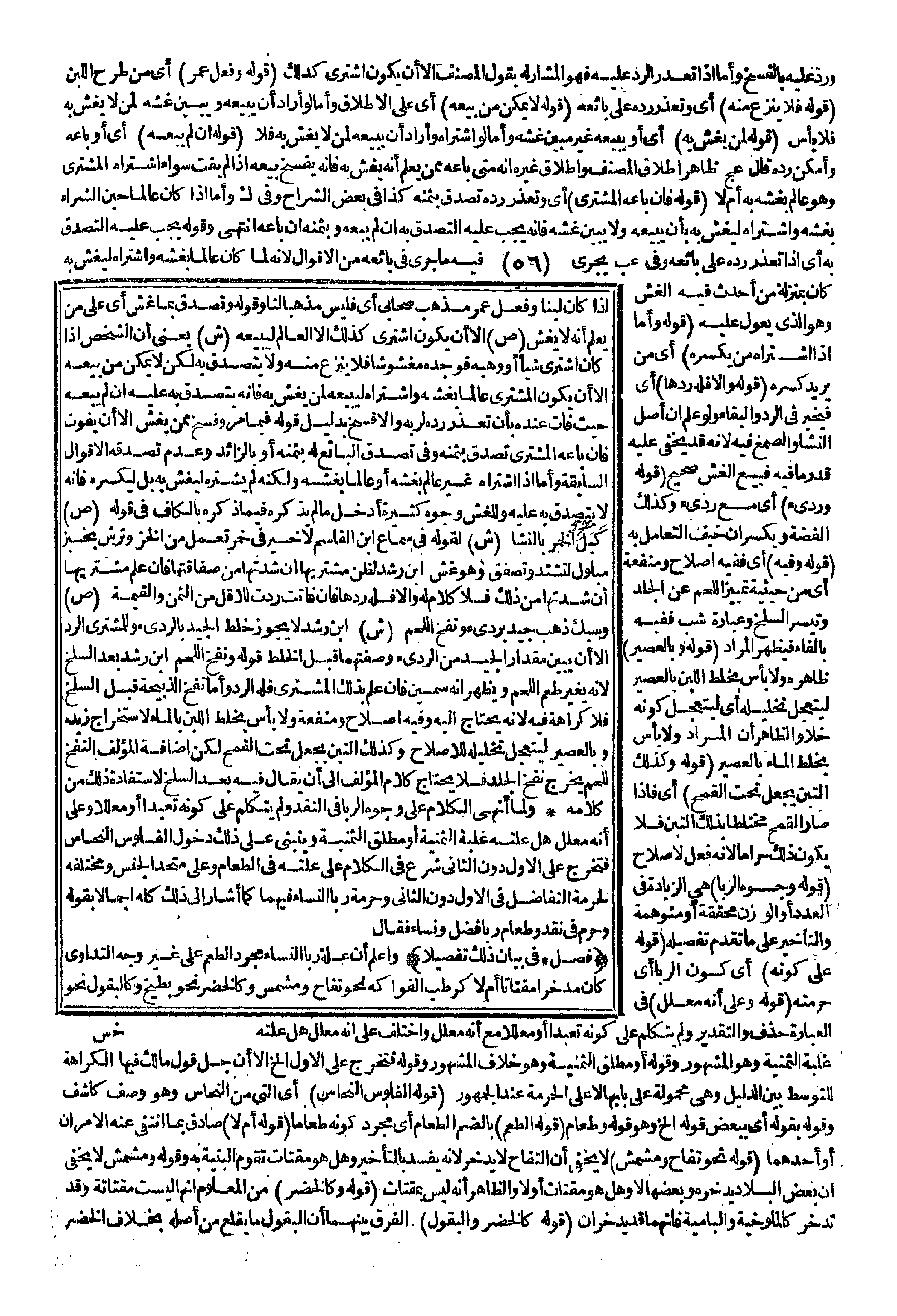 وَلَمَّا أَنْهَى الْكَلَامَ عَلَى وُجُوهِ الرِّبَا فِي النَّقْدِ وَلَمْ يَتَكَلَّمْ عَلَى كَوْنِهِ تَعَبُّدًا أَوْ مُعَلَّلًا وَعَلَى أَنَّهُ مُعَلَّلٌ هَلْ عِلَّتُهُ غَلَبَةُ الثَّمَنِيَّةِ أَوْ مُطْلَقُ الثَّمَنِيَّةِ وَيَنْبَنِي عَلَى ذَلِكَ دُخُولُ الْفُلُوسِ النَّحَاسِ فَتَخْرُجُ عَلَى الْأَوَّلِ دُونَ الثَّانِي، شَرَعَ فِي الْكَلَامِ عَلَى عِلَّتِهِ فِي الطَّعَامِ وَعَلَى مُتَّحِدِ الْجِنْسِ وَمُخْتَلِفِهِ لِحُرْمَةِ التَّفَاضُلِ فِي الْأَوَّلِ دُونَ الثَّانِي وَحُرْمَةِ رِبَا النَّسَاءِ فِيهِمَا كَمَا أَشَارَ إلَى ذَلِكَ كُلِّهِ إجْمَالًا بِقَوْلِهِ وَحَرُمَ فِي نَقْدٍ وَطَعَامٍ رِبَا فَضْلٍ وَنَسَاءٍ فَقَالَ (فَصْلٌ فِي بَيَانِ ذَلِكَ تَفْصِيلًا) وَاعْلَمْ أَنَّ عِلَّةَ رِبَا النَّسَاءِ مُجَرَّدُ الطُّعْمِ عَلَى غَيْرِ وَجْهِ التَّدَاوِي كَانَ مُدَّخَرًا مُقْتَاتًا أَمْ لَا كَرَطْبِ الْفَوَاكِهِ نَحْوِ تُفَّاحٍ وَمُشْمِسٍ وَكَالْخُضَرِ نَحْوِ بِطِّيخٍ وَكَالْبُقُولِ نَحْوِ