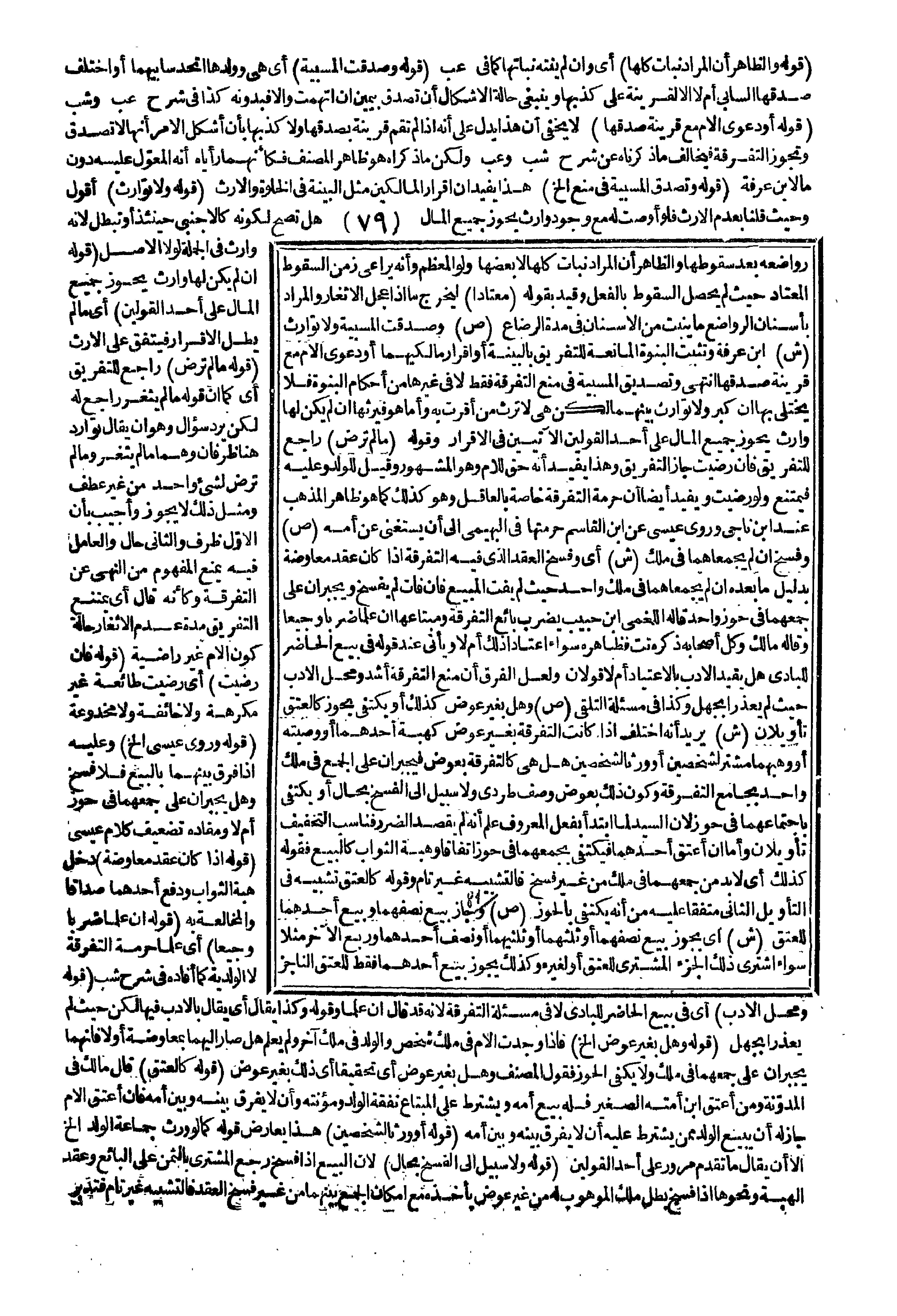 (قَوْلُهُ: إنْ لَمْ يَكُنْ لَهَا وَارِثٌ يَحُوزُ جَمِيعَ الْمَالِ عَلَى أَحَدِ الْقَوْلَيْنِ) أَيْ: مَا لَمْ يَطُلْ الْإِقْرَارُ فَيَتَّفِقُ عَلَى الْإِرْثِ (قَوْلُهُ: مَا لَمْ تَرْضَ) رَاجِعٌ لِلتَّفْرِيقِ أَيْ: كَمَا أَنَّ قَوْلَهُ مَا لَمْ يُثْغِرْ رَاجِعٌ لَهُ لَكِنْ يَرِدُ سُؤَالٌ وَهُوَ أَنْ يُقَالَ تَوَارَدَ هُنَا ظَرْفَانِ وَهُمَا مَا لَمْ يَثْغَرْ وَمَا لَمْ تَرْضَ لِشَيْءٍ وَاحِدٍ مِنْ غَيْرِ عَطْفٍ وَمِثْلُ ذَلِكَ لَا يَجُوزُ وَأُجِيبَ بِأَنَّ الْأَوَّلَ ظَرْفٌ وَالثَّانِيَ حَالٌ وَالْعَامِلُ فِيهِ يَمْنَعُ الْمَفْهُومُ مِنْ النَّهْيِ عَنْ التَّفْرِقَةِ وَكَأَنَّهُ قَالَ أَيْ: يَمْتَنِعُ التَّفْرِيقُ مُدَّةَ عَدَمِ الْإِثْغَارِ حَالَةَ كَوْنِ الْأُمِّ غَيْرَ رَاضِيَةٍ.