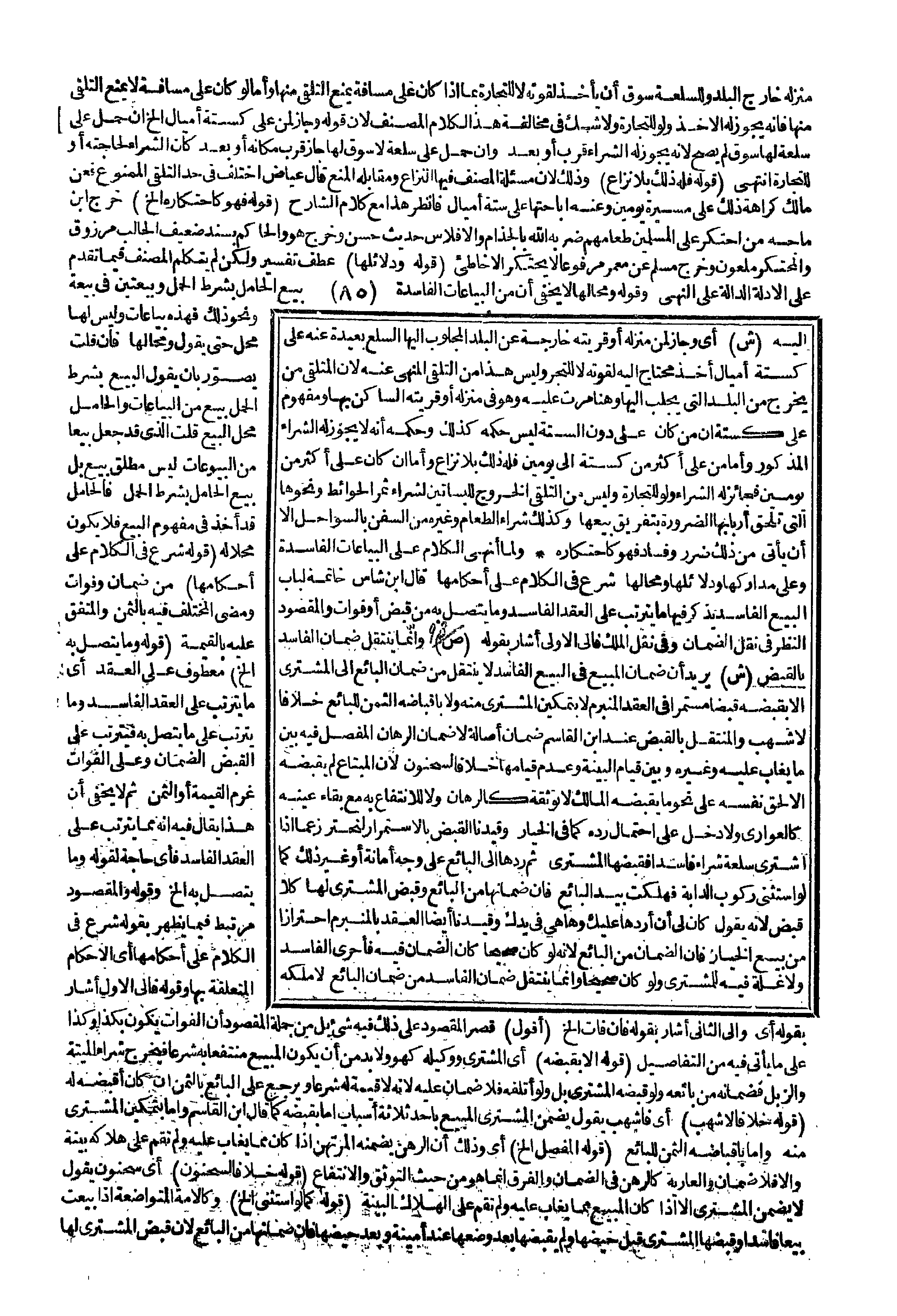إلَيْهِ (ش) أَيْ: وَجَازَ لِمَنْ مَنْزِلُهُ، أَوْ قَرْيَتُهُ خَارِجَةٌ عَنْ الْبَلَدِ الْمَجْلُوبِ إلَيْهَا السِّلَعُ بَعِيدَةٌ عَنْهُ عَلَى كَسِتَّةِ أَمْيَالٍ أَخْذُ مُحْتَاجٍ إلَيْهِ لِقُوتِهِ لَا لِلتَّجْرِ وَلَيْسَ هَذَا مِنْ التَّلَقِّي الْمَنْهِيِّ عَنْهُ؛ لِأَنَّ الْمُتَلَقِّيَ مَنْ يَخْرُجُ مِنْ الْبَلَدِ الَّتِي يُجْلَبُ إلَيْهَا وَهُنَا مَرَّتْ عَلَيْهِ وَهُوَ فِي مَنْزِلِهِ، أَوْ قَرْيَتِهِ السَّاكِنِ بِهَا وَمَفْهُومُ عَلَى كَسِتَّةٍ أَنَّ مَنْ كَانَ عَلَى دُونِ السِّتَّةِ لَيْسَ حُكْمُهُ كَذَلِكَ وَحُكْمُهُ أَنَّهُ لَا يَجُوزُ لَهُ الشِّرَاءُ الْمَذْكُورُ.